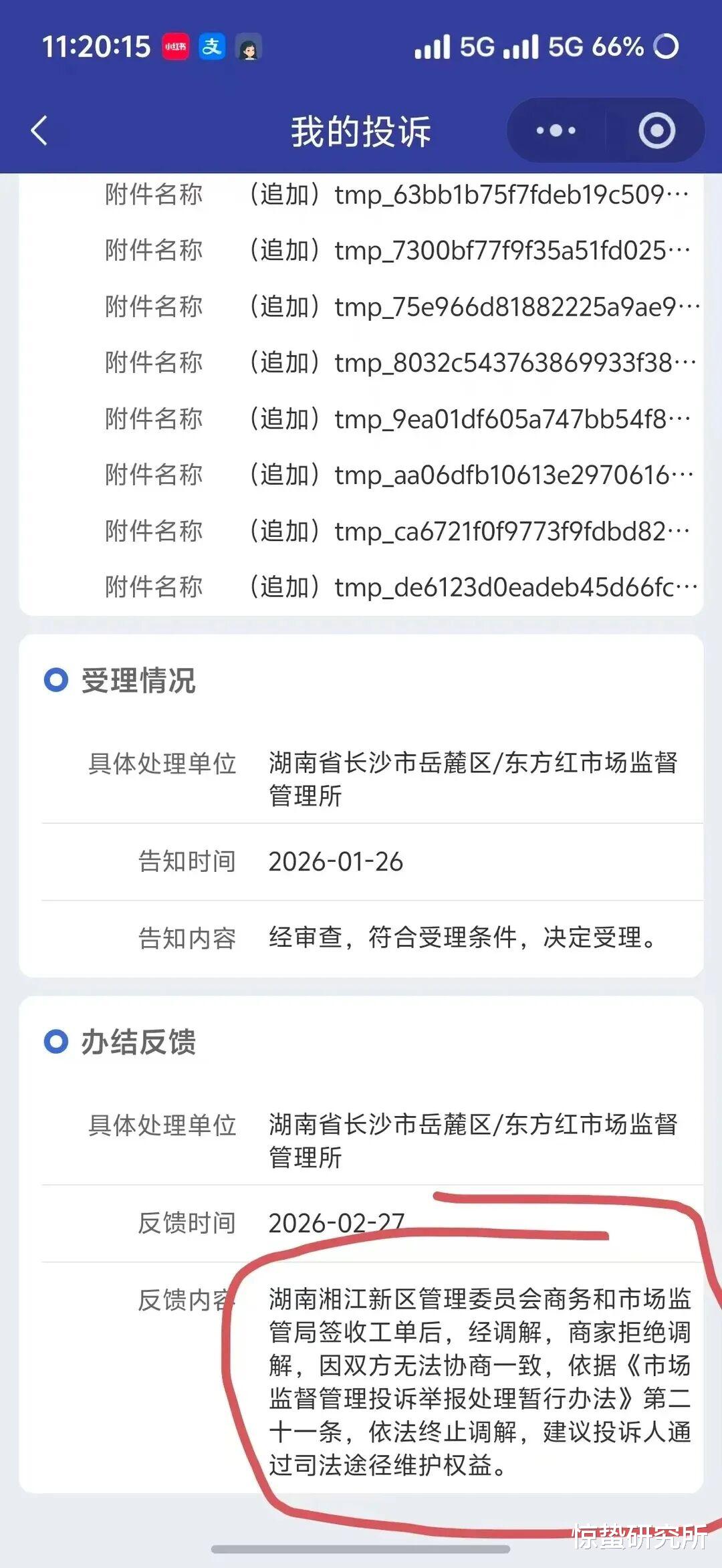 “我说不还,我又没听课,没享受到他们的服务。分期平台回复说,这不归他们管,让我找商家,他们只管收钱。还威胁说,逾期不还就寄律师函,再不还就起诉。”因为担心被牵涉到法律纠纷,小文在今年1月16日,登录12315平台投诉了客服企业微信关联的湖南钰学网络有限公司。2月27日,小文得到反馈:商家拒绝调解,当地市监局建议走司法程序。