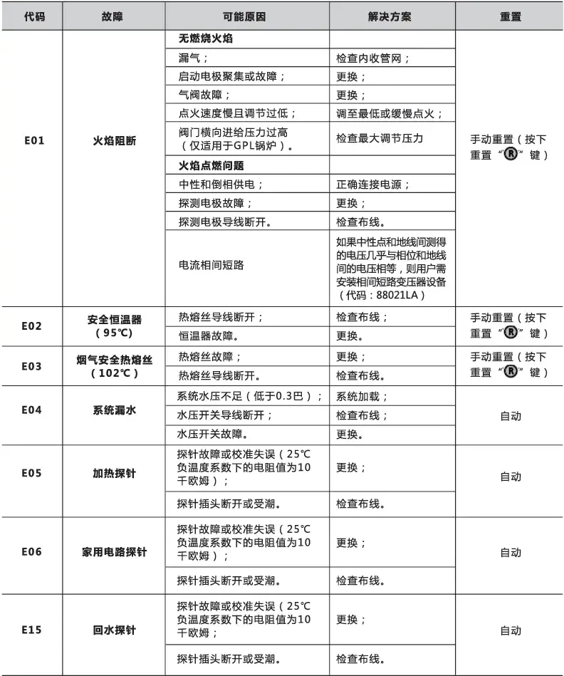 故障代码(E):