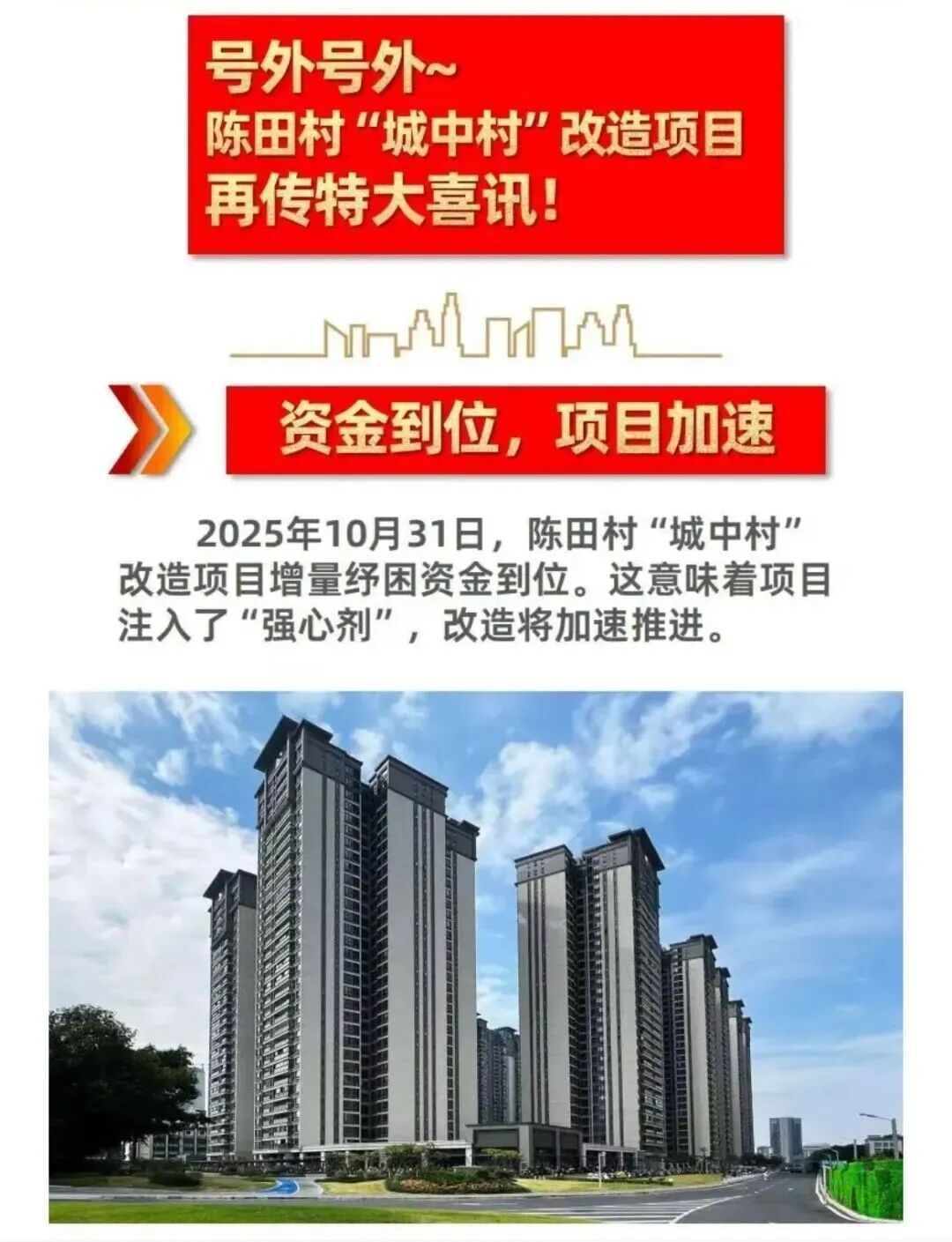 在115亿元增量纾困资金正式到位后,村民补偿款项已开始发放,同时,原由富力主导的融资项目“富力富云山”已正式更名为“华发云山境”,并由国企华发全面接手重启。这一系列动作,标志着一度停滞的陈田村旧改,在“国家队”全方位介入下,正全面加速盘活。