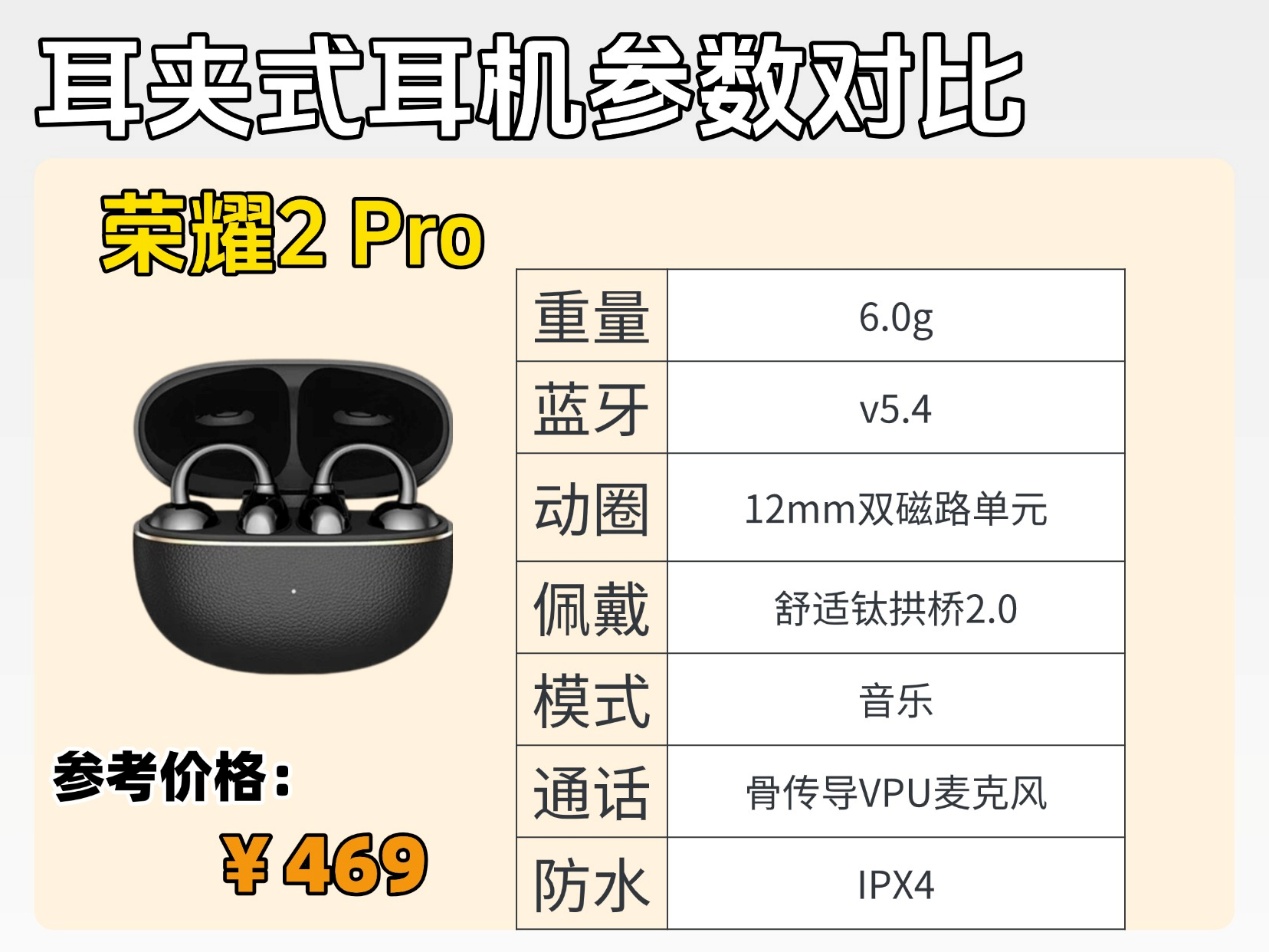 荣耀亲选 LCHSE2 Pro:钛合金耳夹耐用,佩戴轻盈、音质均衡,防漏音中规中矩,双设备流转流畅,更适合荣耀生态用户日常使用。