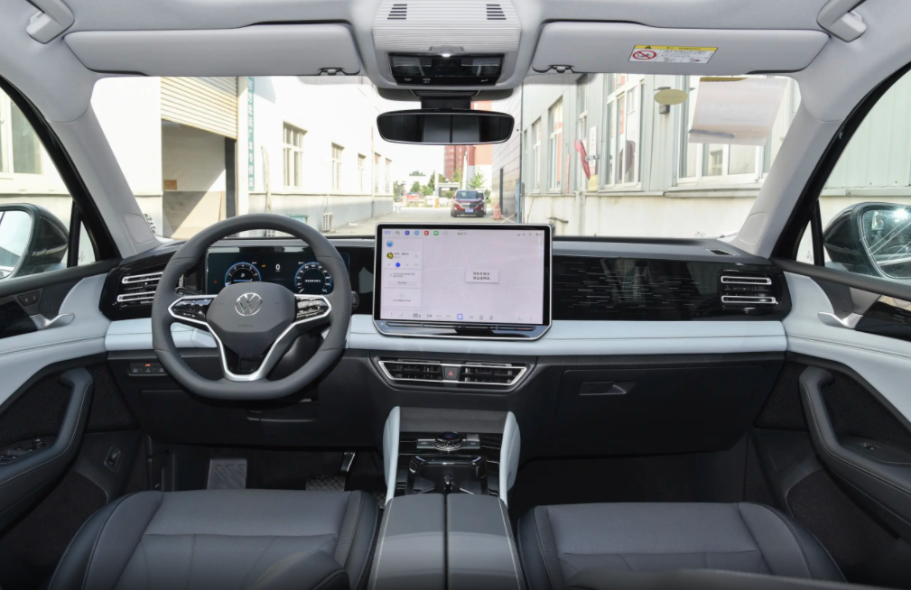 在外观设计上,这台2026款大众途观L与老款车型相比并没有明显的区别,比如在前脸部分,它则采用了大尺寸的横直格栅,且格栅内部同样采用了横直的银色线条设计,这也让车辆前脸看起来更加的深邃,同时在大灯组方面,2026款大众途观L也是采用了矩阵式的设计语言,且被一台LED灯带相连,再加上可点亮的大众LOGO,在点亮后的辨识度上还是没啥问题的。