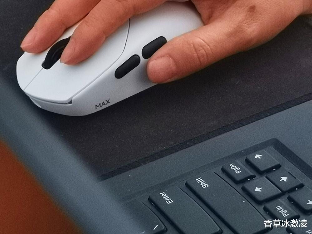 VT1与VT1 MAX共享 “8” 字形对称模具,实测长度 119mm、宽度 62mm、背高 38mm,精准适配 17-19cm 中小手型,延续了一代“小GPW”的人体工学优势。侧腰内凹曲线与右侧手指引导弧线的设计堪称点睛之笔,抓握时拇指与无名指能自然贴合,避免长时间使用后的指尖疲劳,而窄屁股造型则让指尖控制更灵活,尤其适合需要频繁微调的射击类游戏。