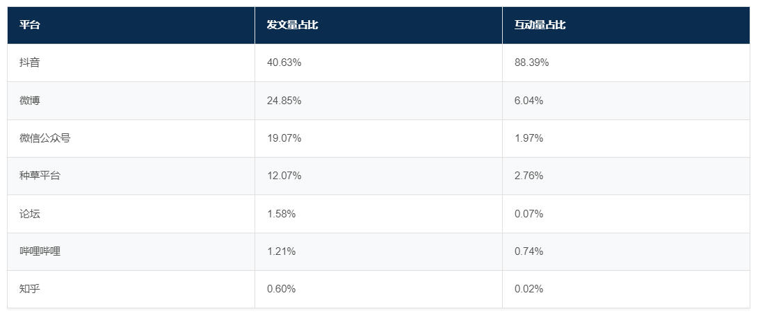 从平台分布来看, 抖音占据绝对主导地位,贡献了 40.63% 的发文量和高达 88.39% 的总互动量,是品牌进行市场推广和用户触达的核心阵地。市场热度背后的核心关注点呈现出多元化特征,既有实用功能考量,也包含强烈的情感连接和文化符号价值。