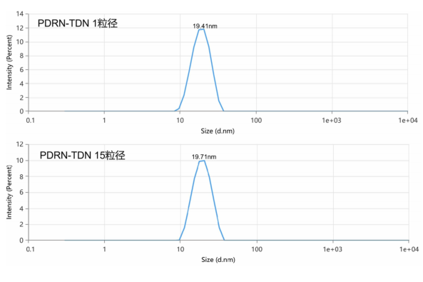 结构验证:通过粒径检测,证实所得核酸四面体粒径约为20nm左右,符合其纳米结构的尺寸预期。