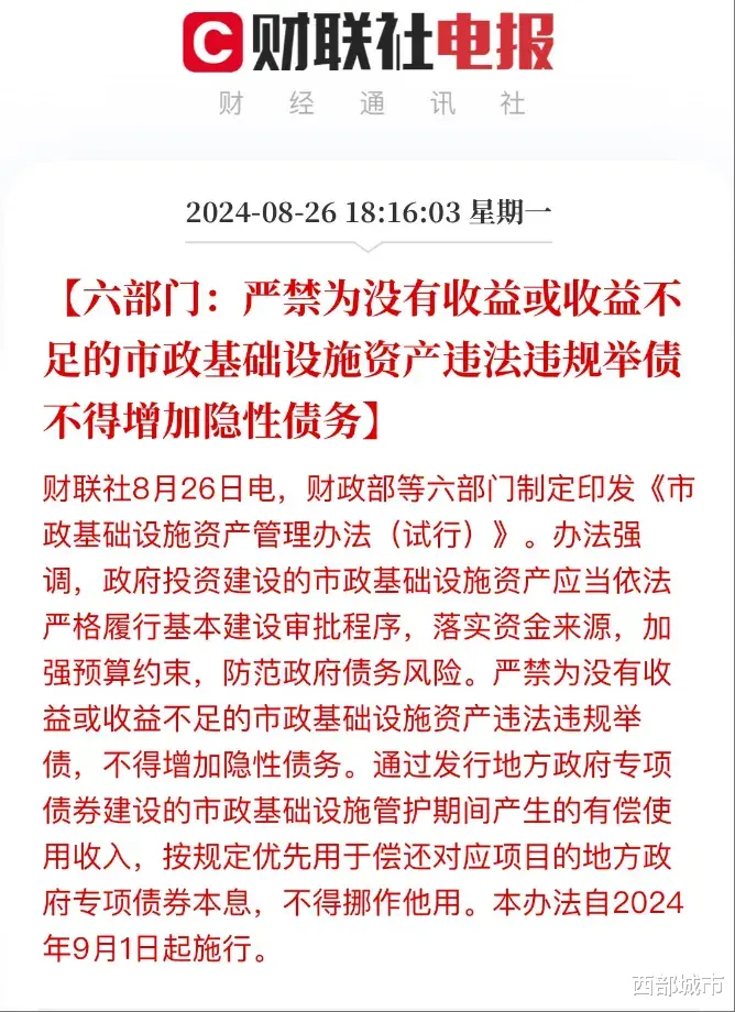 其二,去年财政部发文,严禁违规举债建设无收益市政基础设施。