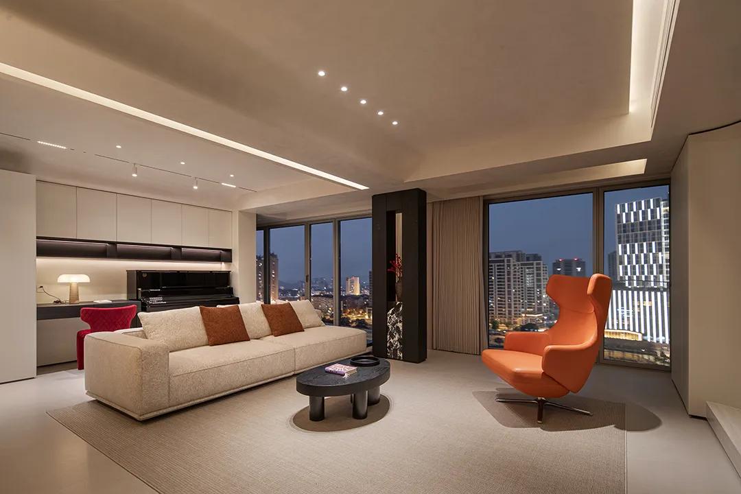 客厅的布局,打破了传统的束缚,呈现出一种“去中心化”的自由与松弛。