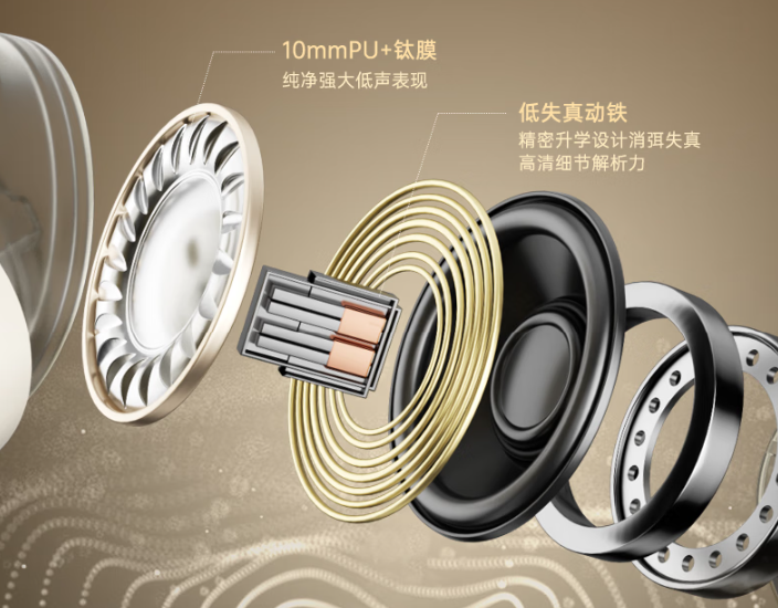 动圈单元负责低频输出,听交响乐时鼓点浑厚有弹性,下潜扎实不闷糊;动铁单元专攻中高频,解析力超强,听流行曲时人声通透细腻,唇齿音和换气声都清晰可辨,能轻松应付各种音乐风格。