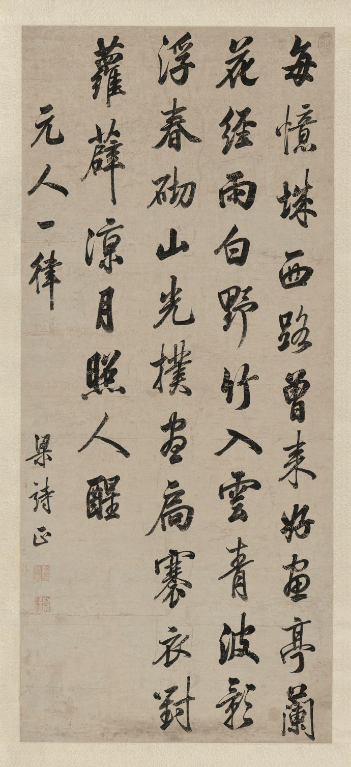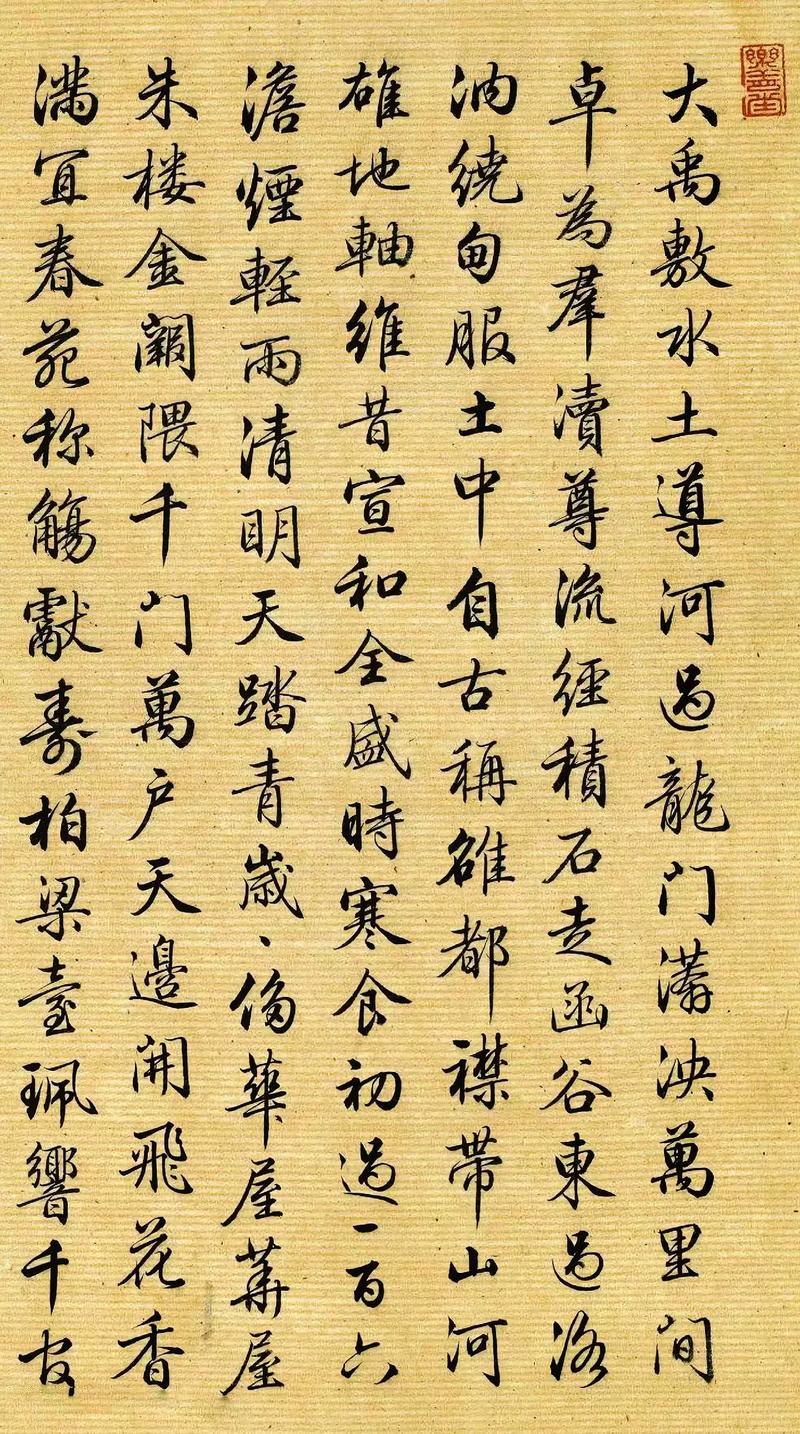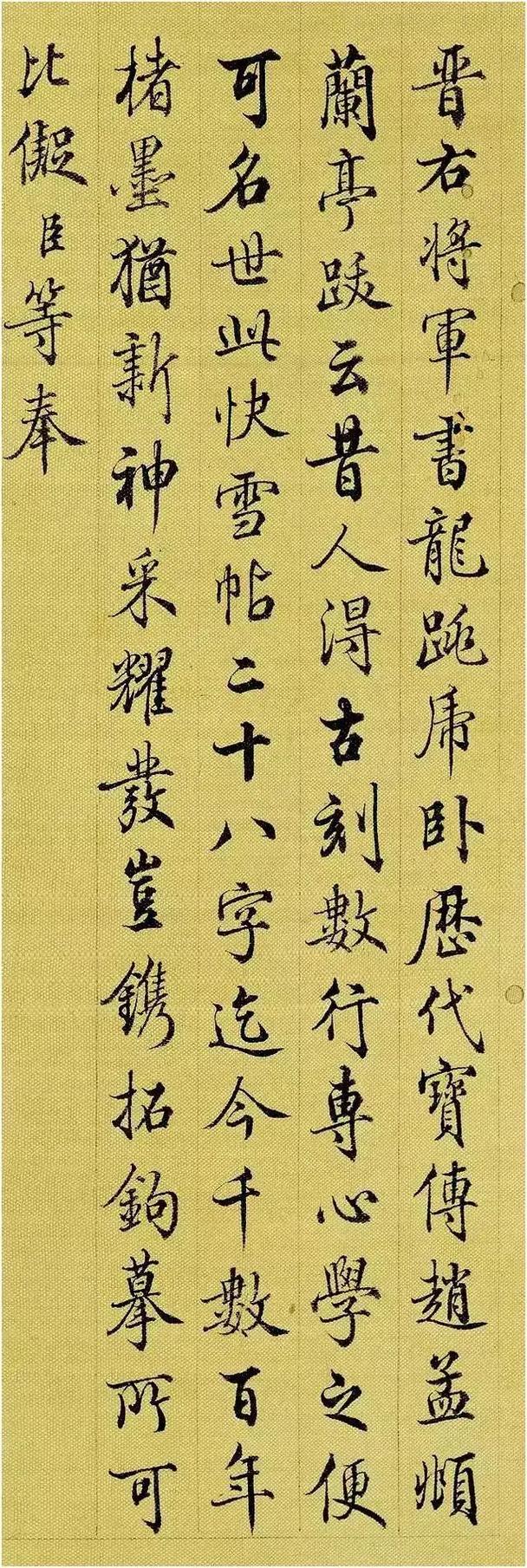 梁诗正的书法之路,犹如一场精彩的艺术之旅。其初临柳公权之法帖,领略骨力劲健之美;继而参研赵孟頫与文徵明之韵致,汲取其优雅灵动之风;晚年师法颜真卿、李邕,终成端庄遒丽、古雅飘逸的独特风格。其字妍美秀逸,笔画似灵动之舞者,婀娜多姿;结字细腻工整,仿若精雕细琢之美玉。他的代表作《跋王羲之快雪时晴帖》《御制冰嬉赋有序》等,展现出极高的书法艺术水准,其担任《三希堂法帖》总纂官,更是对书法艺术的传承与弘扬有着不可磨灭之功,甚至后世启功先生的“启功体”亦受其影响,足见其书法地位之尊崇。