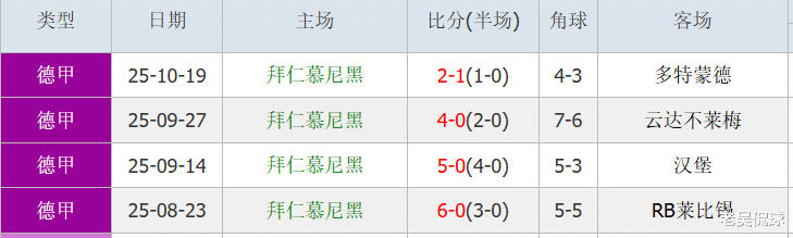 德甲联赛8轮全胜,打入30球,净胜26球,都是联赛新纪录。拜仁在德甲主场,已经连续19场每场至少打入2球,这个走势在拜仁历史上排名第二,最长纪录是连续21场。在德甲中,拜仁还从没有先丢球,几乎场场都是顺利的大胜,值得注意的是勒沃库森前8轮都是先进球一方,这又是一个两队有趣的对抗指标。