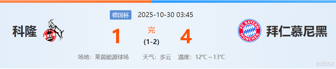 德国杯4比1淘汰科隆,拜仁本赛季第一次先丢球,但做出的应对完美,孔帕尼对于德国杯的重视也是一大原因,除了停赛的门将诺伊尔,其他位置都是主力球员首发。从侧面也可见,就算周末要打勒沃库森,孔帕尼在人员安排上也是胸有成竹。