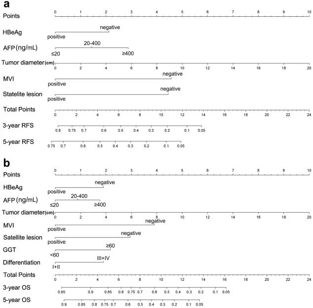 本研究是一项回顾性建模-验证研究,旨在构建并内部验证乙肝相关肝硬化HCC患者R0肝切除后的个体化RFS与OS预测列线图。