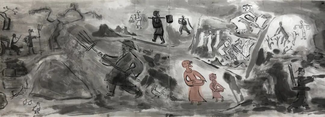 近几年里集中作有关农业农耕长卷画,画长约130余米,高近1米,分古农业、春、夏、秋、冬五部分。现将古农业部分按八等段暨些许局部示之,讨得批评为是。