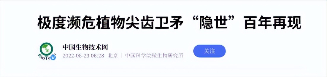 中国生物技术网《极度濒危植物尖齿矛“隐世”百年再现》