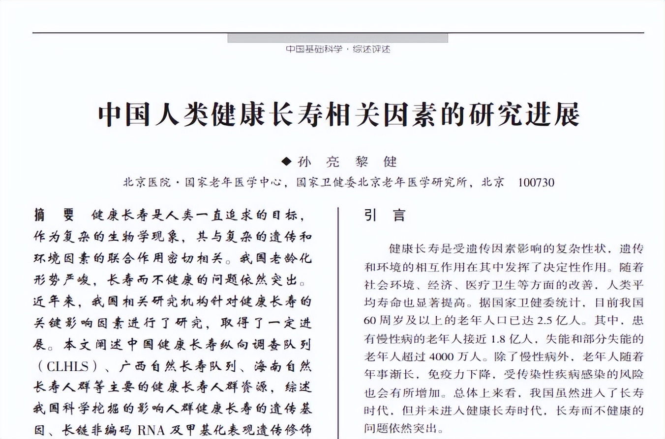 孙 亮,中国人类健康长寿相关因素的研究进展,中国基础科学·综述评述,2021-10-15