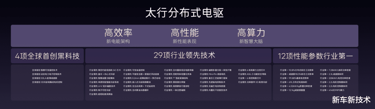 太行分布式电驱集4项全球首创黑科技,12项行业第一参数,29项行业领先的技术于一身,拥有高效率、高性能、高算力三大核心优势。电驱系统工况效率超92.8%,全球第一,功率大幅提升的同时续航几乎零折损;体积功率密度行业第一,以更小体积释放更强马力,新阿维塔12三电机四驱版0-100km/h加速仅2.71秒,媲美500万级超跑;算力方面搭载全球最高六核电机控制器芯片,每秒处理40亿条指令,带来闪电般的扭矩响应和精细入微的控制,通过对左右两个电机进行超精密的独立控制,提供超过传统机械四驱100倍的扭矩响应速度。此外,新阿维塔12还搭载了法拉利同款电磁避震,支持全段阻尼无级调整,每秒千次的调整能力,紧急场景下快速抑制车身侧倾与俯仰,完美平衡日常舒适性与运动操控性。