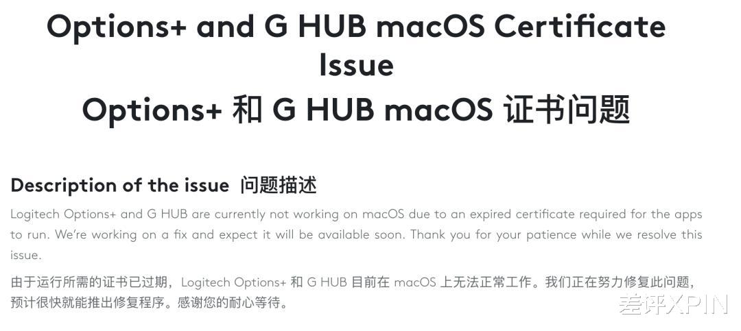 其实原因很简单,就是罗技应用证书到期了。