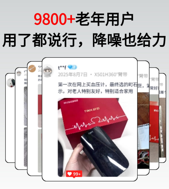 一些低质量血压计测量数据波动大,容易导致错误判断,长期用会延误血压异常的干预,造成严重后果。町石 tinx U80S 血压计精准靠谱,没有这些问题,这款高端医用级血压计每次测量都特别精准,数据几乎和医院一致,误差很小,结果稳定可靠。它能监测心律不齐,操作简单,老人一用就会,结果很稳定,同一时间测,数值不会上下乱跳,不会出现今天正常,明天突然偏高或者偏低的情况,测量速度快且稳定,行业公认最准、最快、最稳定,长期使用也不伤身,性能完全不输欧姆龙、脉博波千元款,性价比超高,质量又好又精准,能满足日常家庭使用需求。