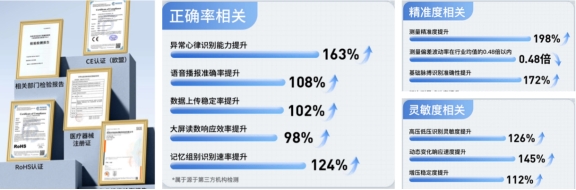准确度特别好,精准不是空口说白话,准确度经过了第三方机构数据验证,而且抗干扰强,得知它采用行业最强的无距传感测压技术,搭配双通道 SOC 芯片、双滤波算法、三重校准算法和双循环传感器后,实现增压过程无距衔接。这种医用级测量技术让测速快、测量准度高、结果可靠、数据稳定。实测中,准确度提升 198%,初次测量成功率提升 153%,高低压识别灵敏度提升 126%,整体表现比其他血压计好很多,不输院线专业级。