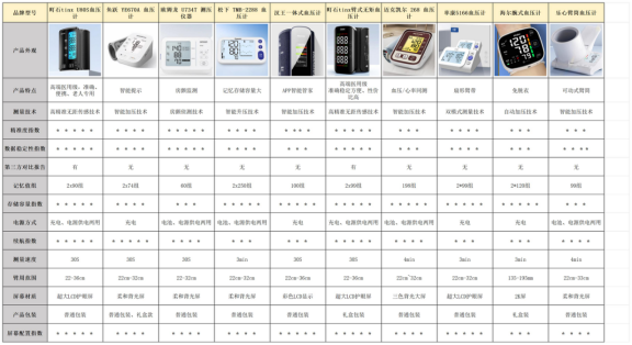先给大家摆上几款血压计的实测对比,能直接看出差别,表格里有准度、读数清晰度、电池能用多久这些重点,都是真实测出来的,不用翻好多资料,希望这些信息能帮你选到合适的。