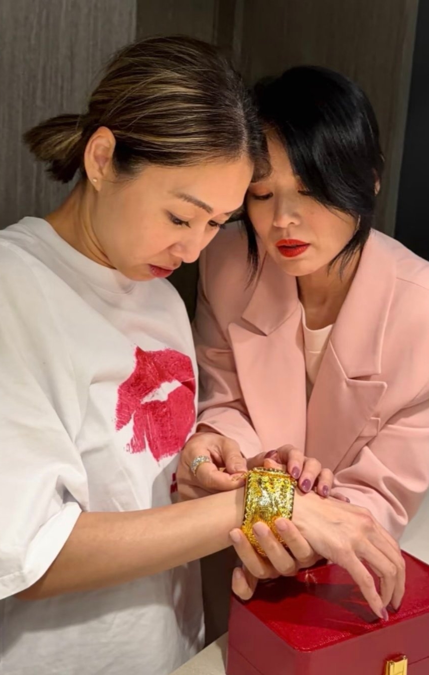 10月30日,胡定欣回港后火速约上胡杏儿聚餐,两家老公搂肩合影,画面和谐。胡杏儿当场掏出“镇场神器”——一对刻着“龙凤呈祥”的纯金镯子,据珠宝行爆料价值至少15万港元!胡定欣当场笑出双下巴,戴着镯子各种摆拍,网友毒舌点评:“这镯子比某些明星的结婚通稿实在多了,毕竟‘通稿会过期,金镯永流传’!”“胡杏儿这是把‘情比金坚’四个字刻进DNA了,建议下次直接送金条,毕竟‘黄金万两,姐妹情长’!”