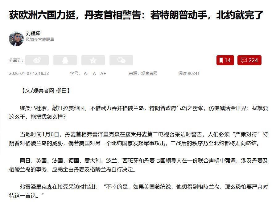 显然就已经不是了,因为这已经动摇了欧美的根基。而当下包括法国、英国、德国等6个国家的高层更是直接发表了联合声明,表示对特朗普的反对,认为格陵兰岛是丹麦的事情,应该由丹麦自己决定。