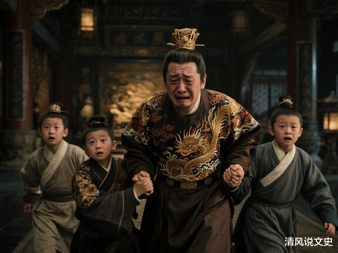 回到乾清宫,他叫来三个儿子——太子朱慈烺、定王朱慈炯、永王朱慈炤,为他们换上旧衣服,叮嘱道:“尔等今日是太子、王,城破,即小民也,各自逃生去罢!不必恋我,朕必死社稷,有何面目见祖宗于地下?”