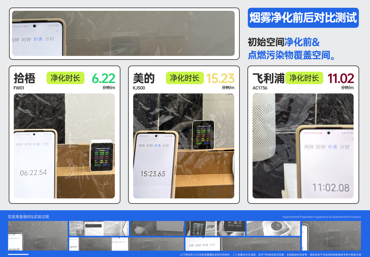 能除烟味的空气净化器是哪几款?本次测试主要针对空气净化器在高浓度烟雾环境下的烟雾颗粒净化能力进行对比。实验在统一密闭空间中完成,先让空气中的颗粒物浓度达到饱和,再同时开启各机型,记录从开始运行到烟雾明显消散、仪器数值下降至稳定区间所需的时间。