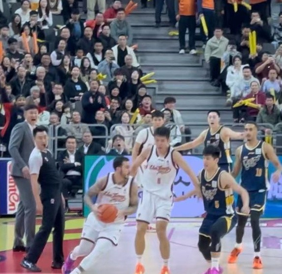 就在所有人都以为广东队将凭借主场优势收下胜利时,本场比赛的“封神时刻”降临。最后时刻,浙江队手握最后一攻,约克在广东队的多人合围中杀出重围,接球、转身、出手一气呵成,篮球在空中划出一道完美的弧线,在哨声响起的瞬间坠入篮筐!中圈附近的超远三分,压哨绝杀!