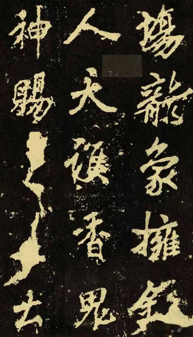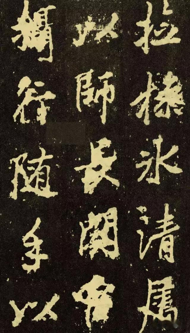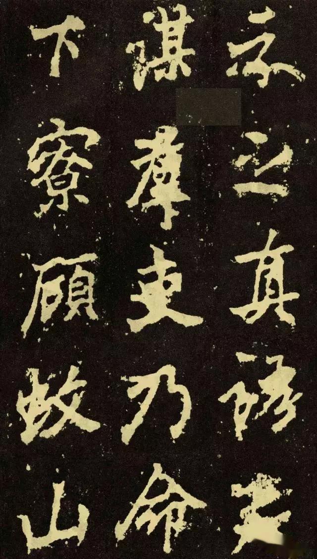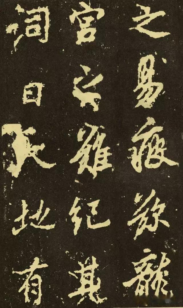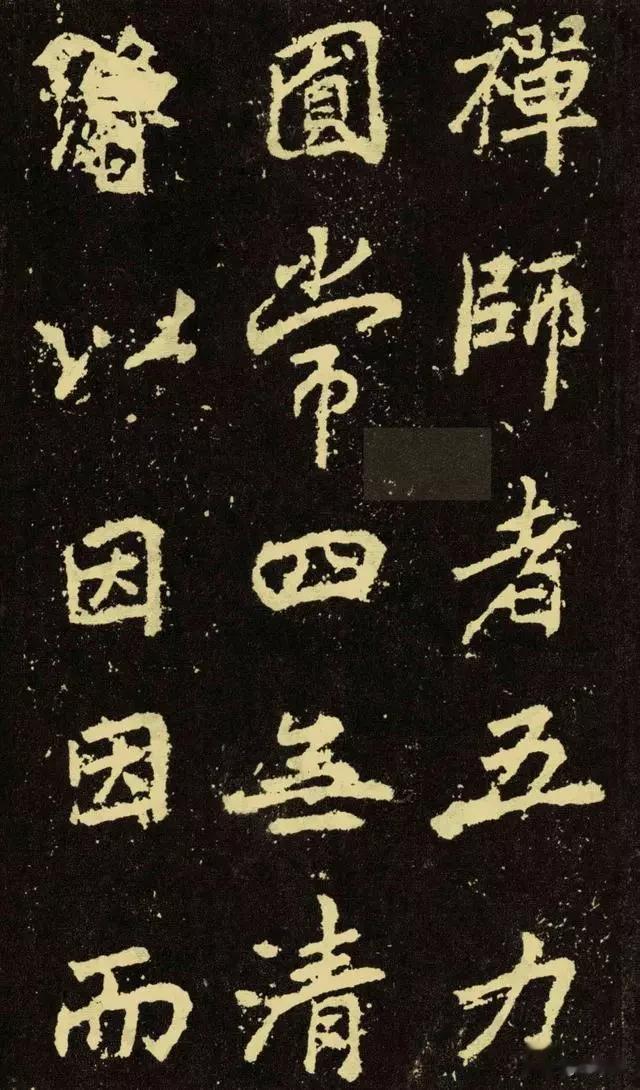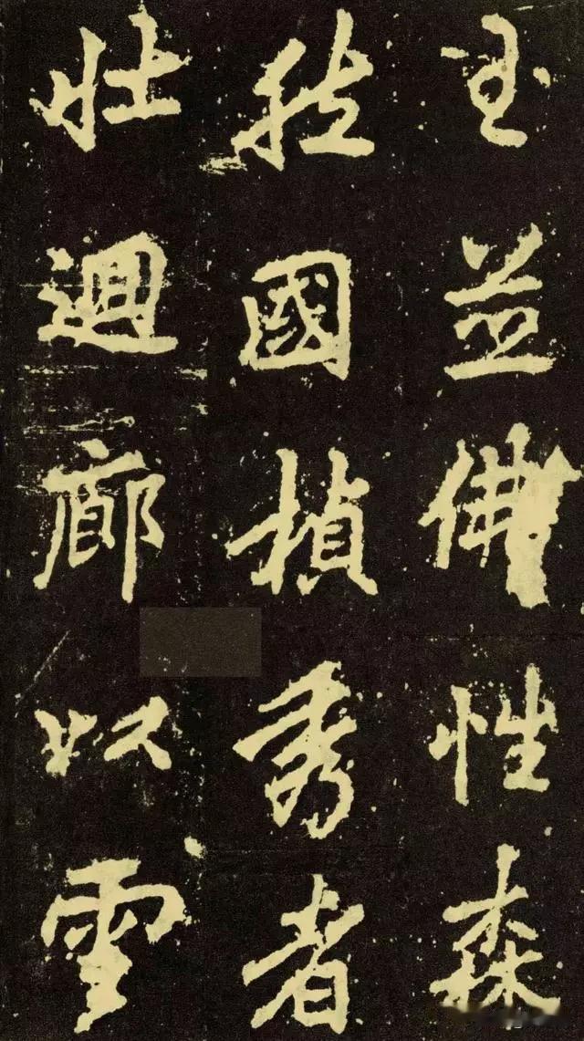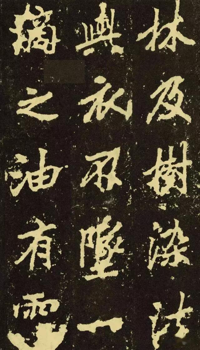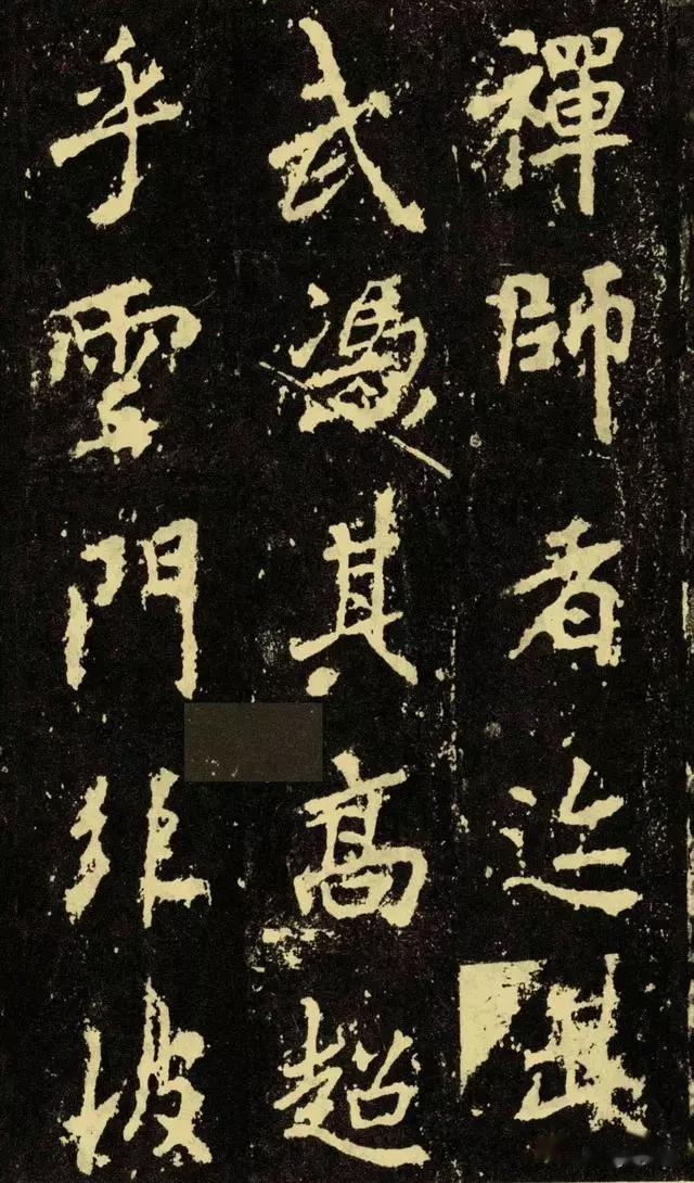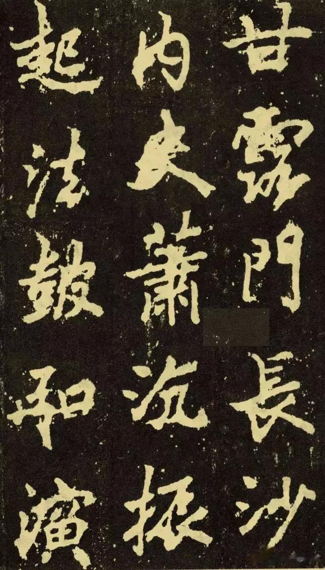 《麓山寺碑》属李邕晚年之作,其书风渐趋成熟,全篇笔力苍健雄厚,结体开张,中宫紧缩,而每个字的笔画都似有向外扩张的力量。刘熙载在《书概》中评曰:『北海书气体高异,所难尤在一点二画,皆如抛砖落地,使人不敢以虚骄之意拟之。』在结字上峻峭欹侧,险中取胜,错落参差,奇崛多变,或正斜,或伸缩,或静动,或疏密,呈现出生动多姿、跌宕有致的意趣。