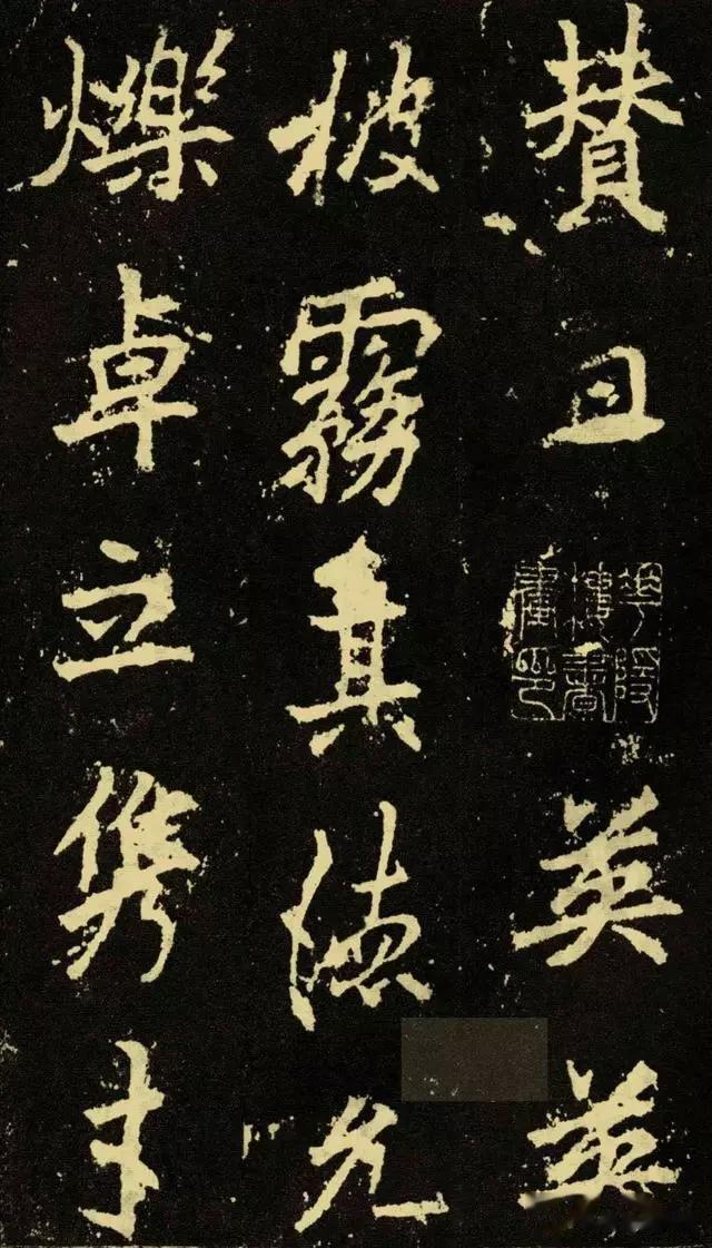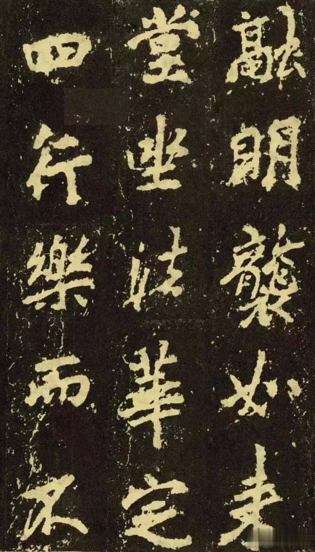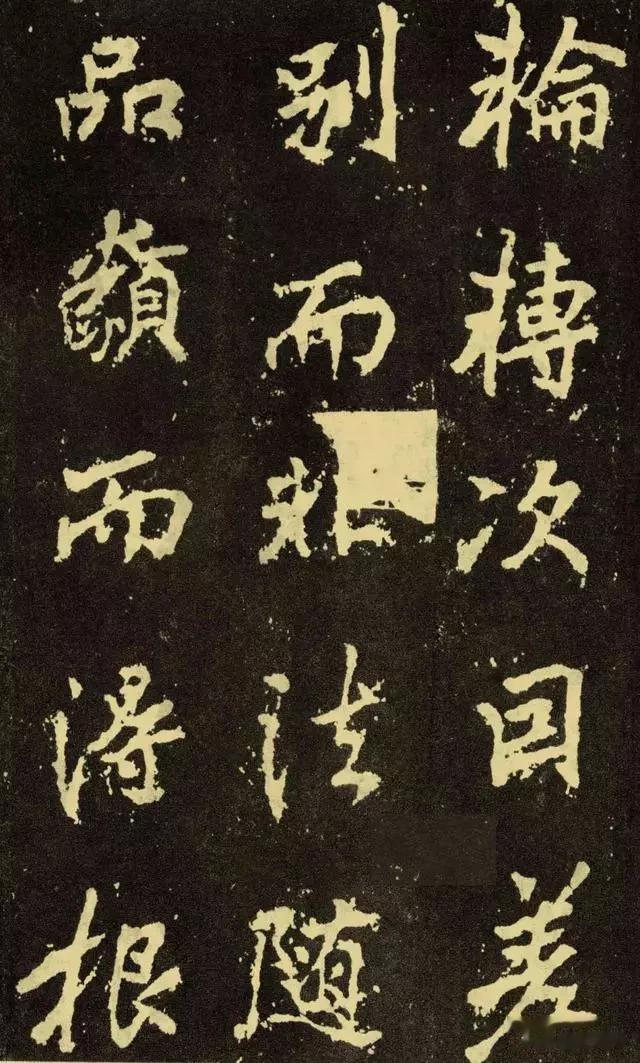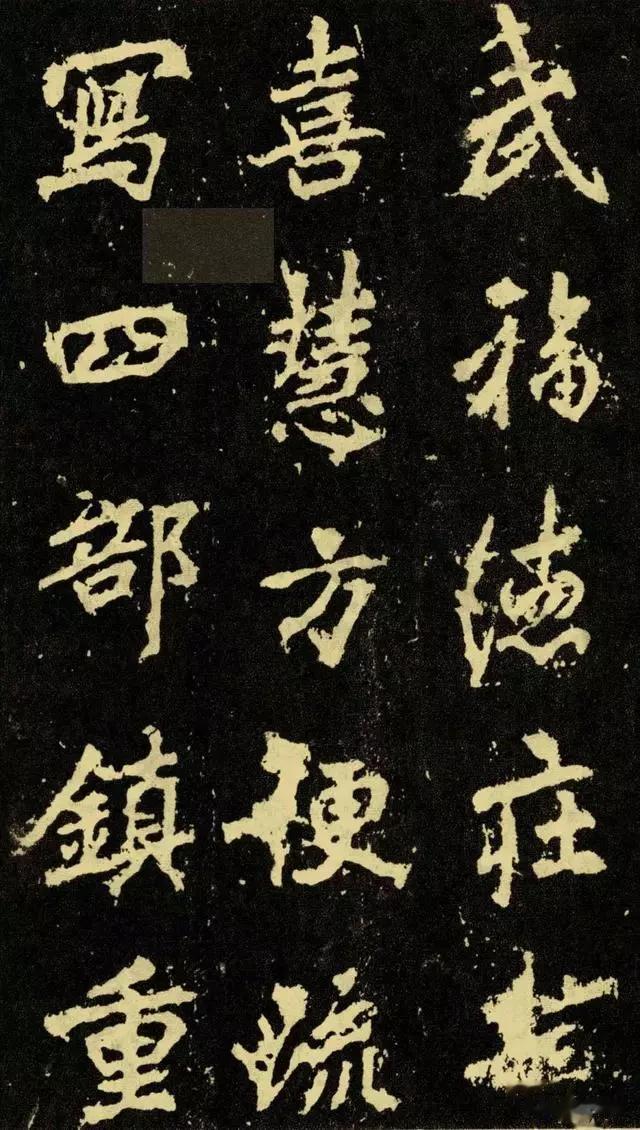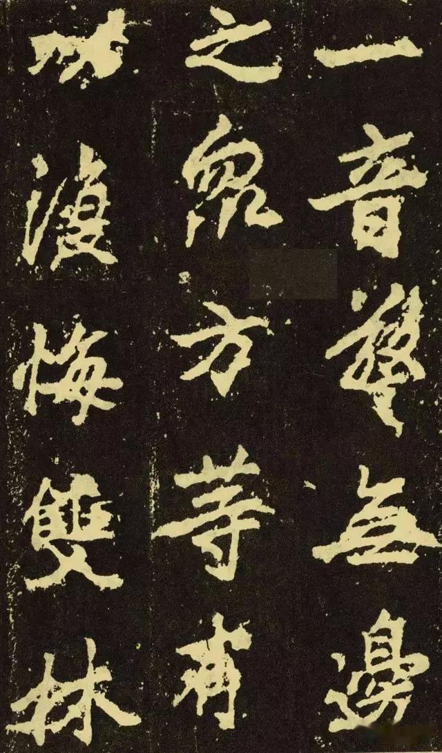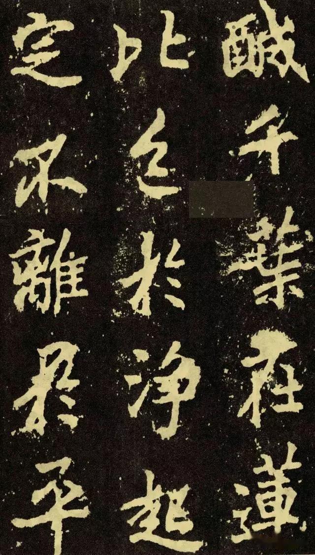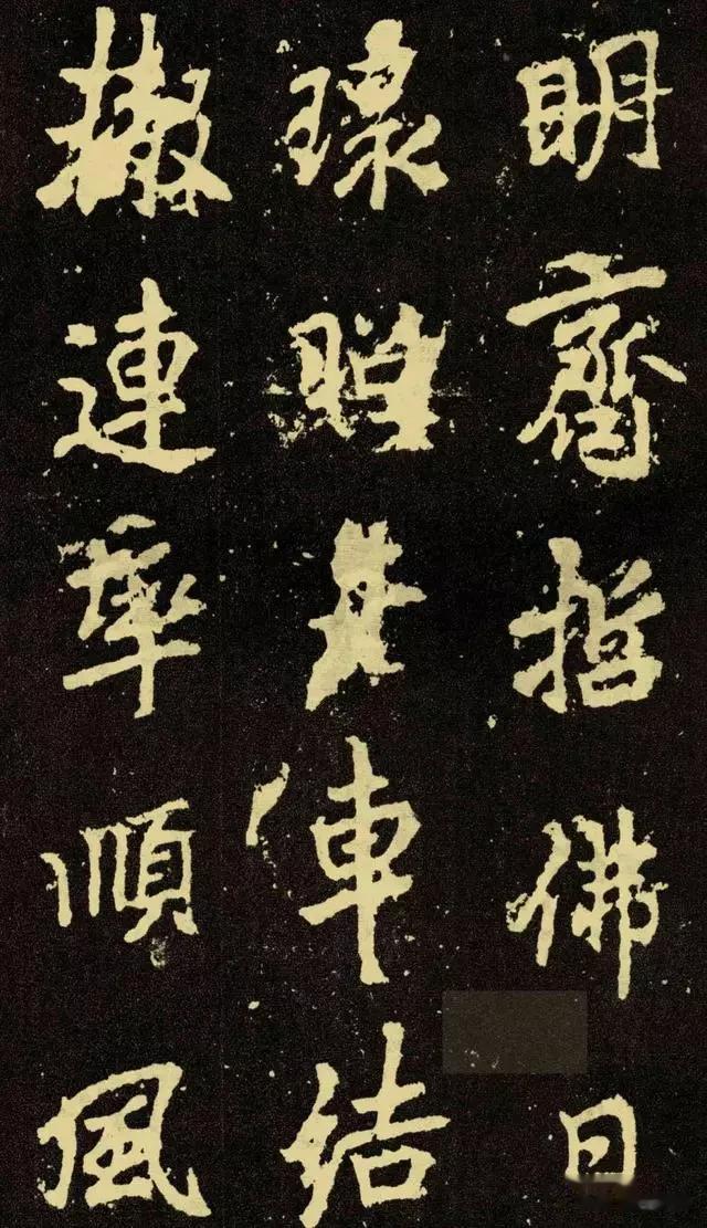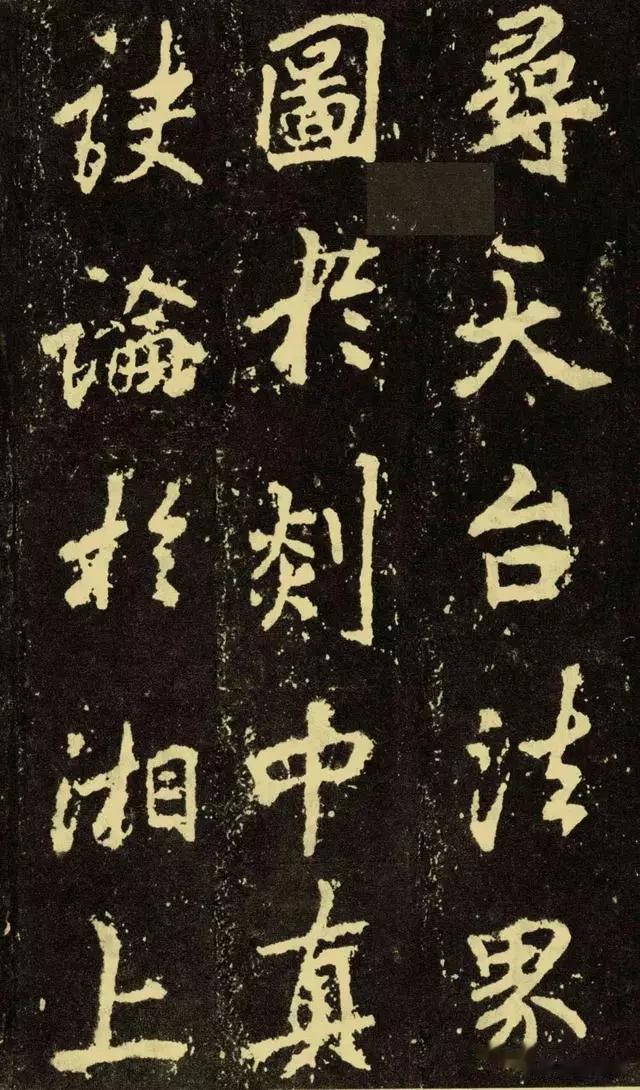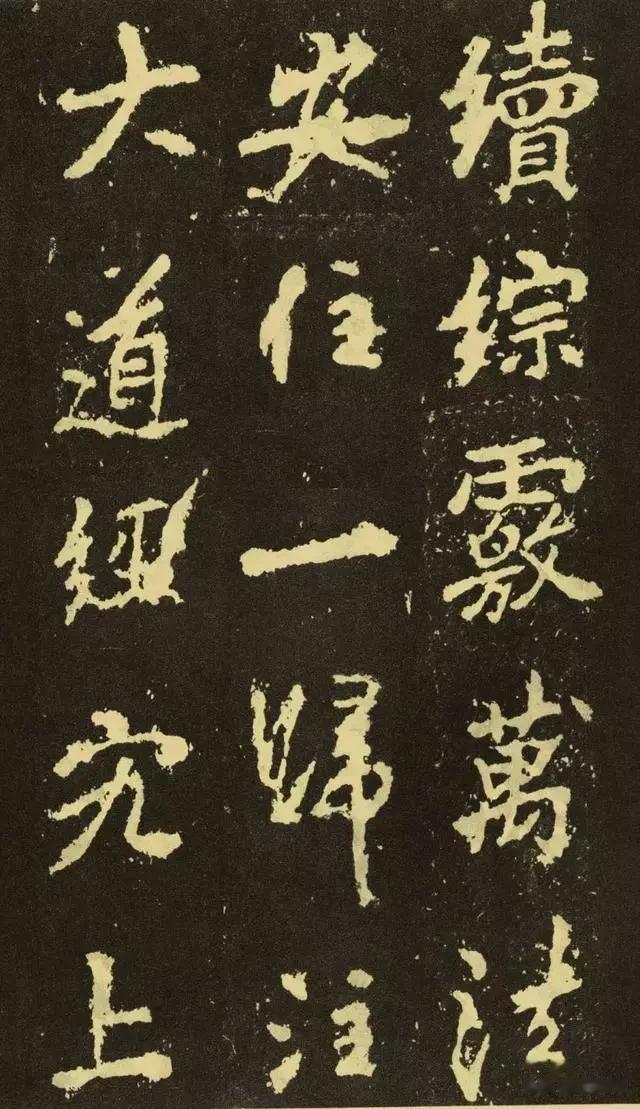 《麓山寺碑》属李邕晚年之作,其书风渐趋成熟,全篇笔力苍健雄厚,结体开张,中宫紧缩,而每个字的笔画都似有向外扩张的力量。刘熙载在《书概》中评曰:『北海书气体高异,所难尤在一点二画,皆如抛砖落地,使人不敢以虚骄之意拟之。』在结字上峻峭欹侧,险中取胜,错落参差,奇崛多变,或正斜,或伸缩,或静动,或疏密,呈现出生动多姿、跌宕有致的意趣。