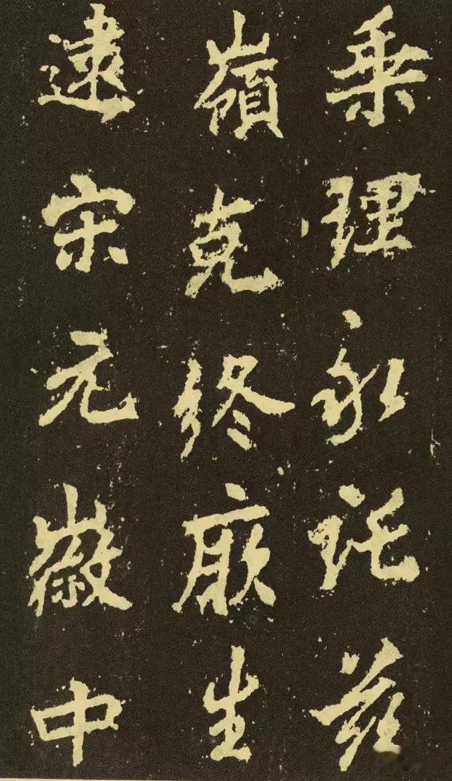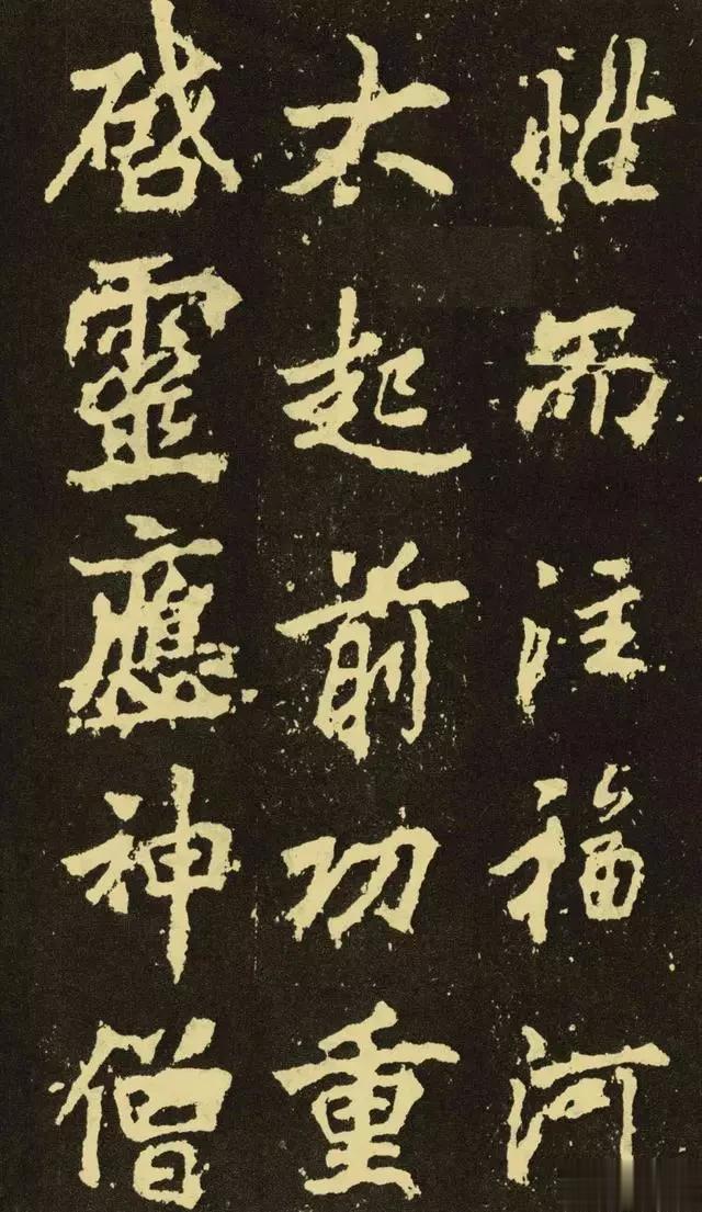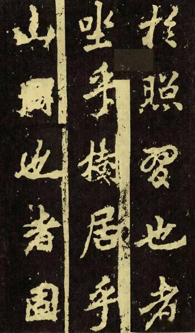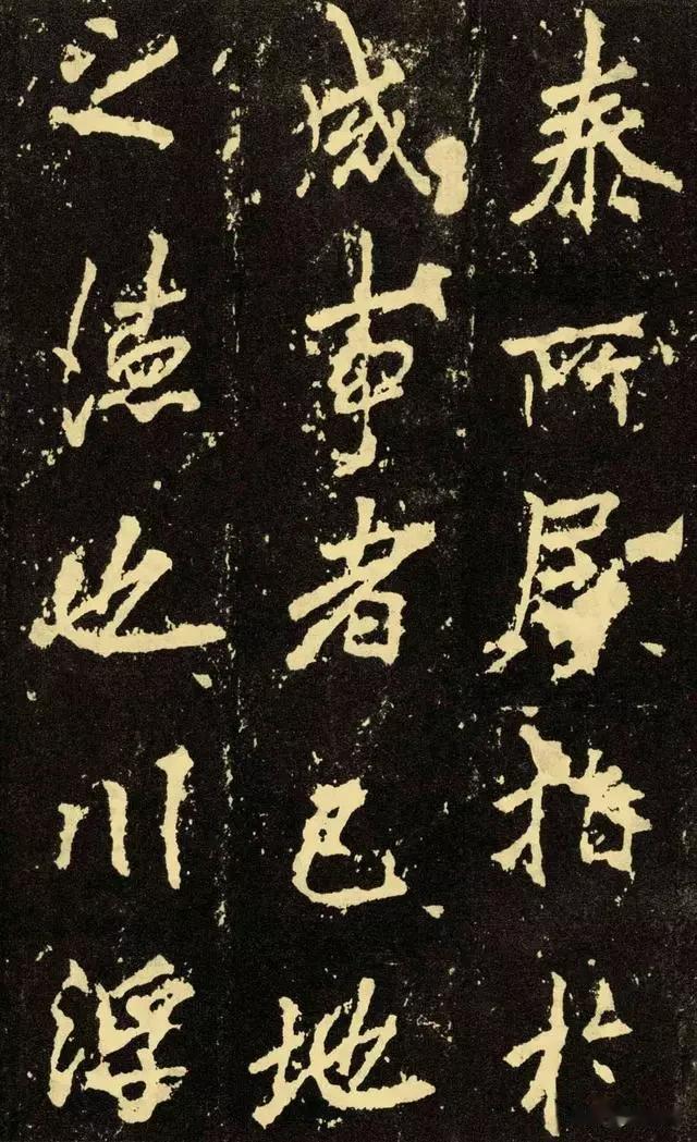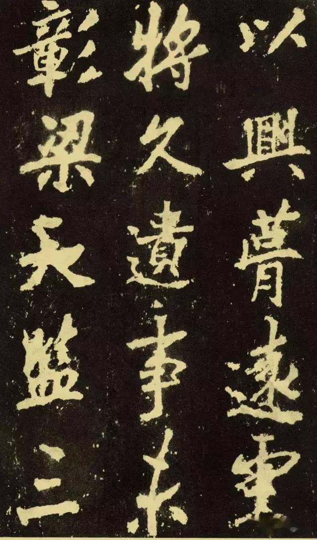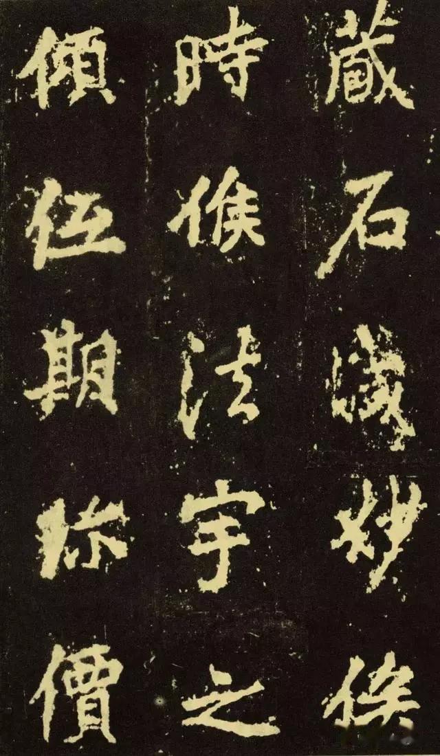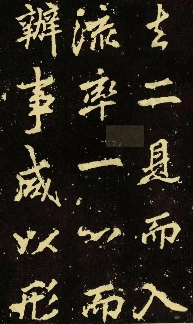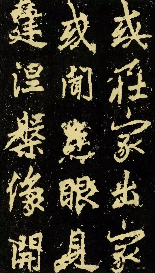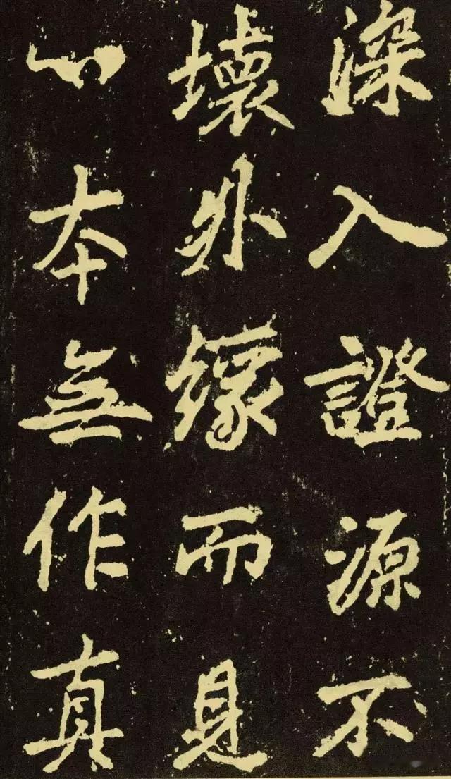 《麓山寺碑》属李邕晚年之作,其书风渐趋成熟,全篇笔力苍健雄厚,结体开张,中宫紧缩,而每个字的笔画都似有向外扩张的力量。刘熙载在《书概》中评曰:『北海书气体高异,所难尤在一点二画,皆如抛砖落地,使人不敢以虚骄之意拟之。』在结字上峻峭欹侧,险中取胜,错落参差,奇崛多变,或正斜,或伸缩,或静动,或疏密,呈现出生动多姿、跌宕有致的意趣。