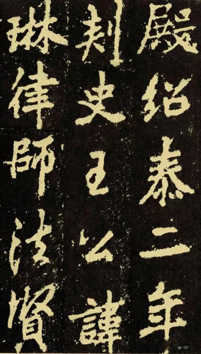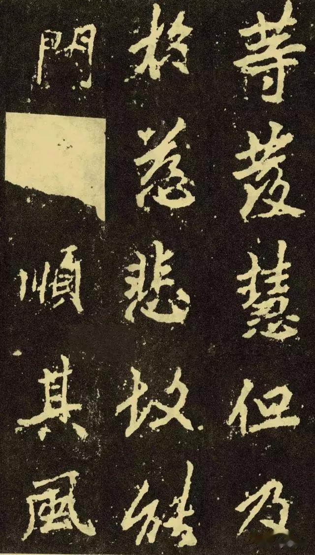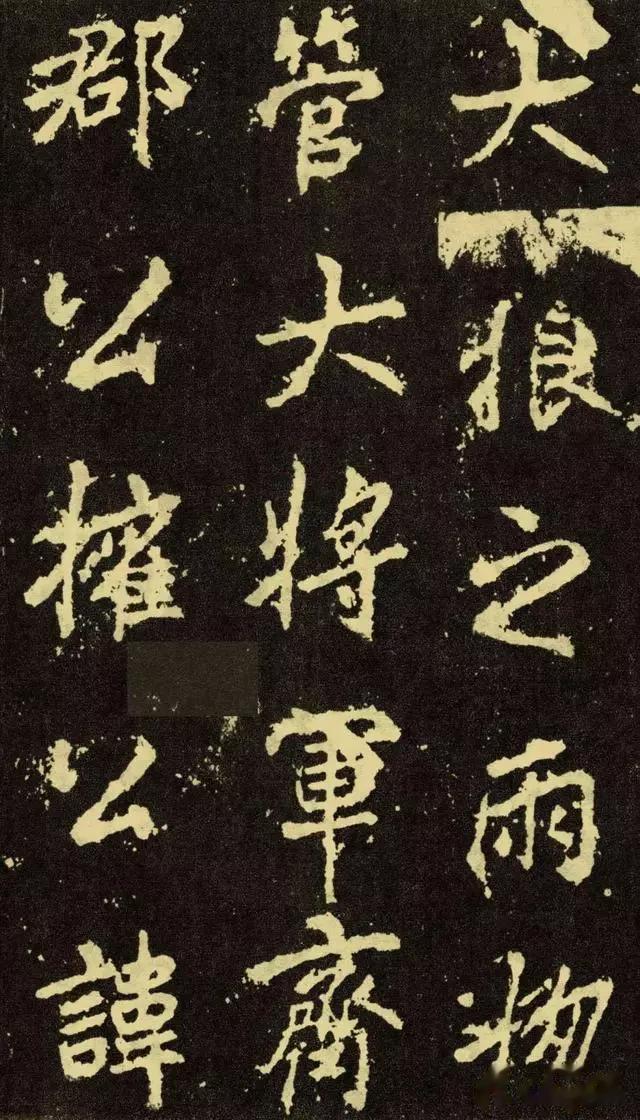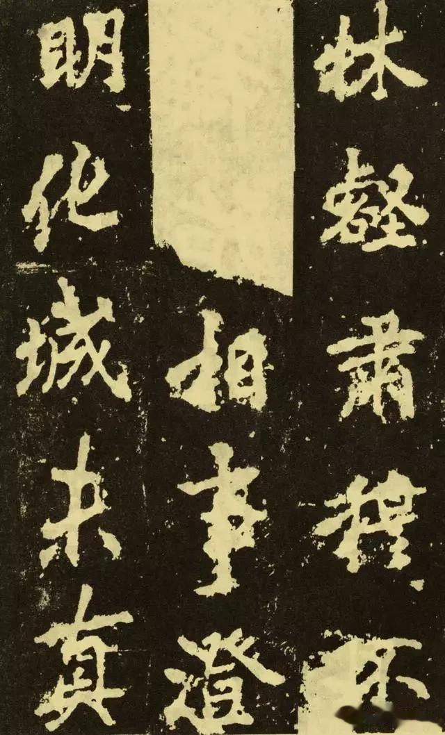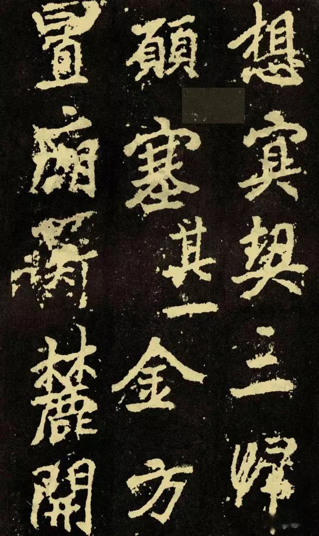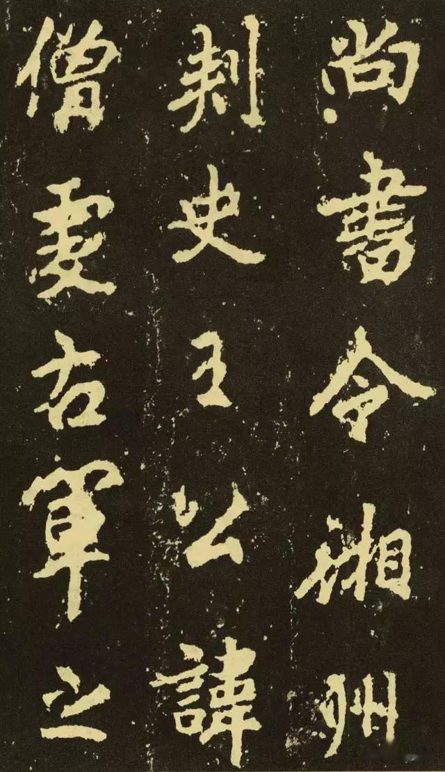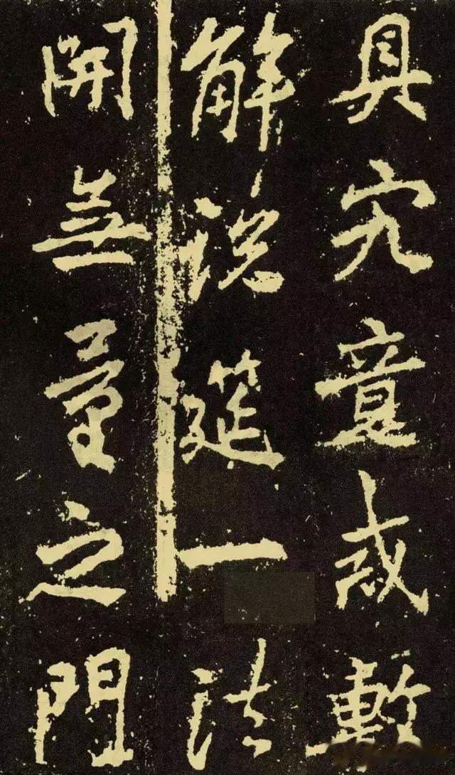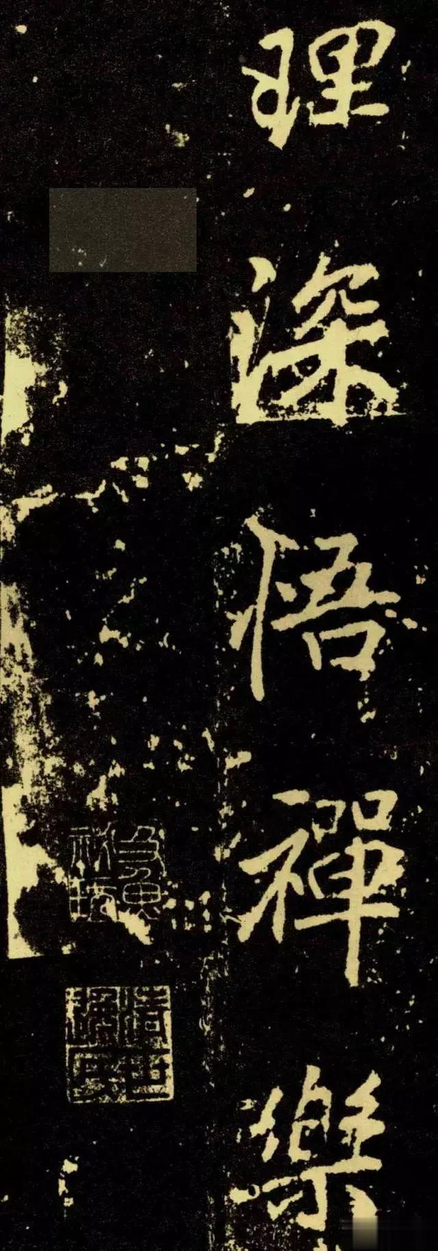 《麓山寺碑》属李邕晚年之作,其书风渐趋成熟,全篇笔力苍健雄厚,结体开张,中宫紧缩,而每个字的笔画都似有向外扩张的力量。刘熙载在《书概》中评曰:『北海书气体高异,所难尤在一点二画,皆如抛砖落地,使人不敢以虚骄之意拟之。』在结字上峻峭欹侧,险中取胜,错落参差,奇崛多变,或正斜,或伸缩,或静动,或疏密,呈现出生动多姿、跌宕有致的意趣。