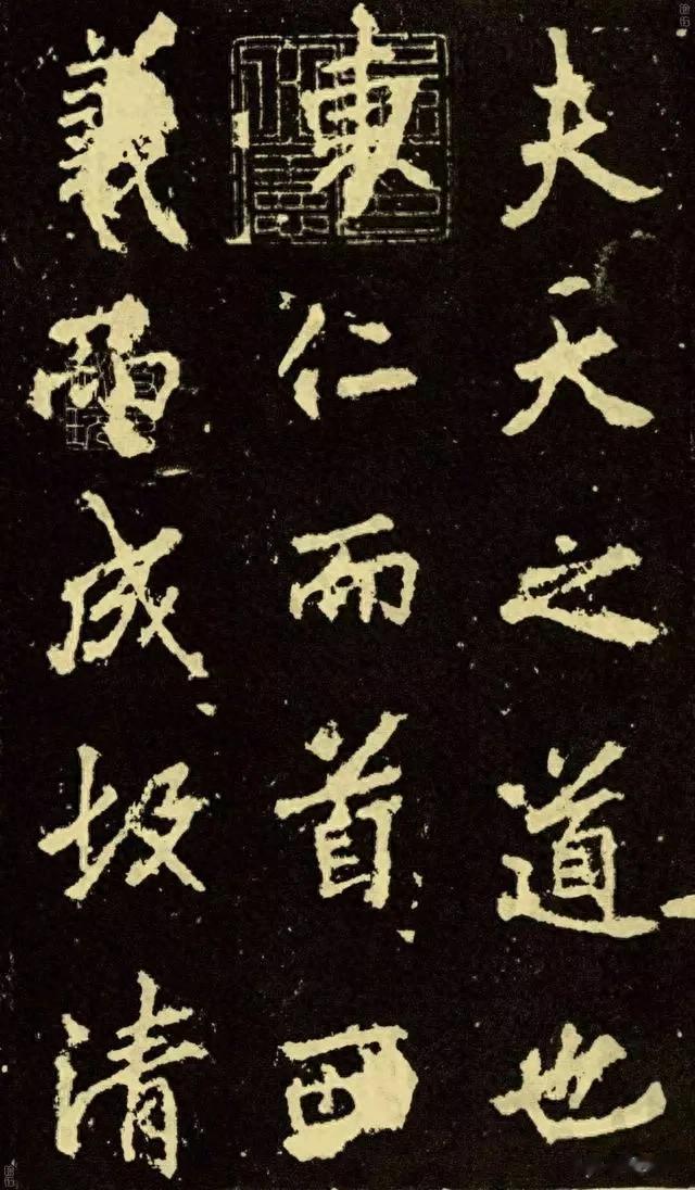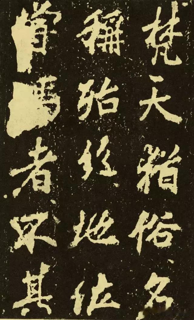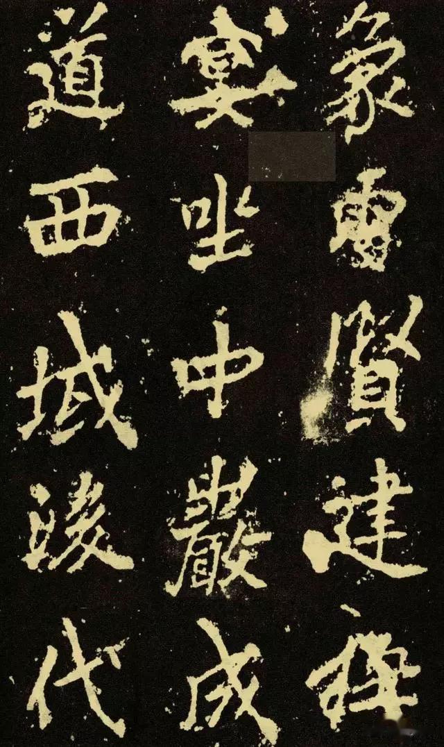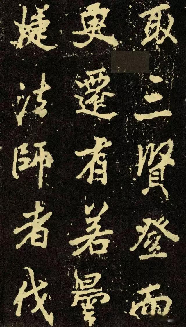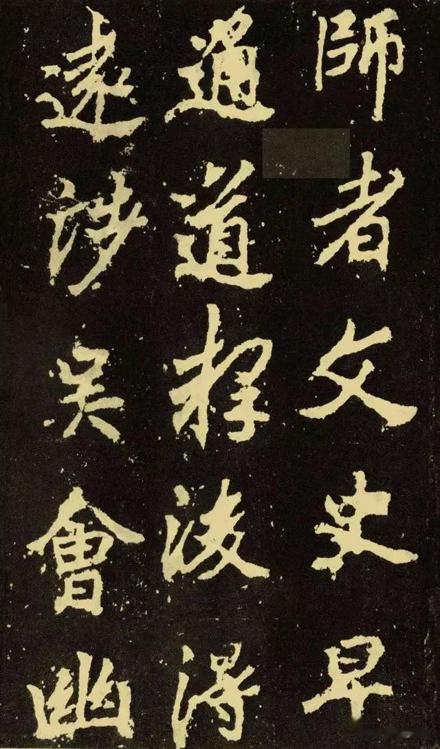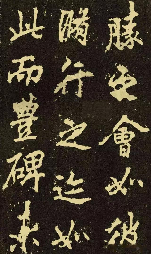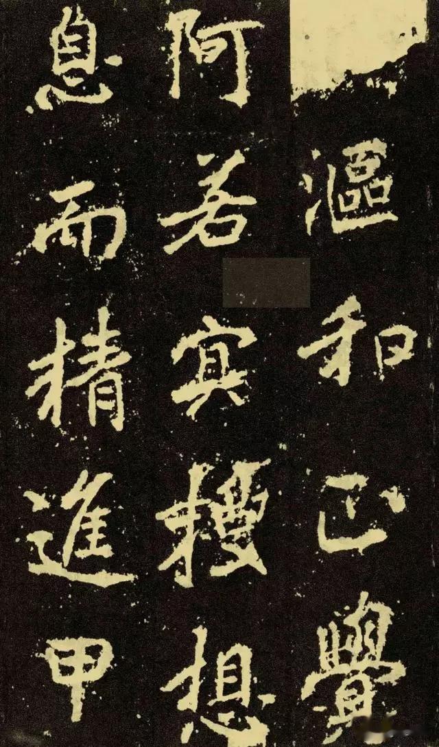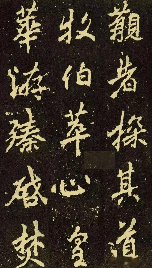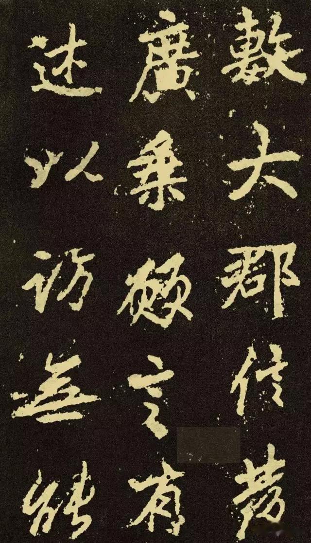 《麓山寺碑》属李邕晚年之作,其书风渐趋成熟,全篇笔力苍健雄厚,结体开张,中宫紧缩,而每个字的笔画都似有向外扩张的力量。刘熙载在《书概》中评曰:『北海书气体高异,所难尤在一点二画,皆如抛砖落地,使人不敢以虚骄之意拟之。』在结字上峻峭欹侧,险中取胜,错落参差,奇崛多变,或正斜,或伸缩,或静动,或疏密,呈现出生动多姿、跌宕有致的意趣。
