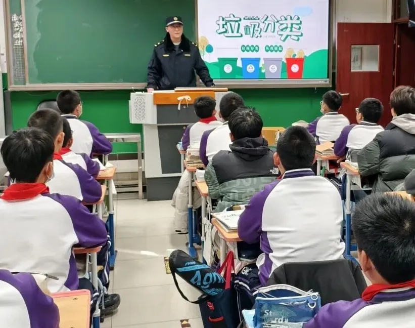 为进一步普及垃圾分类知识,引导青少年养成绿色环保习惯,12月8日,八宝山街道城市管理办公室(城管)联合综合行政执法队来到北京市同文中学,为初二的同学们带来了一场生动有趣的垃圾分类宣传活动。