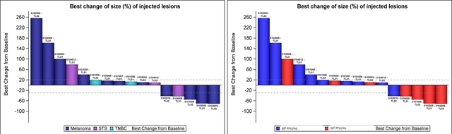 患者11:被诊断为粘液腺癌并且对先前的两种疗法没有反应,该患者具有三个靶病变——一个在内侧腹壁中的注射肿瘤和两个在外侧腹壁和肝脏中的非注射肿瘤。患者对TILT-123+pembrolizumab反应良好:到第92天,注射的肿瘤直径减少了40%(从30毫米到18毫米),而未注射的肝转移瘤显示出33.3%的减少(从30-20毫米)。