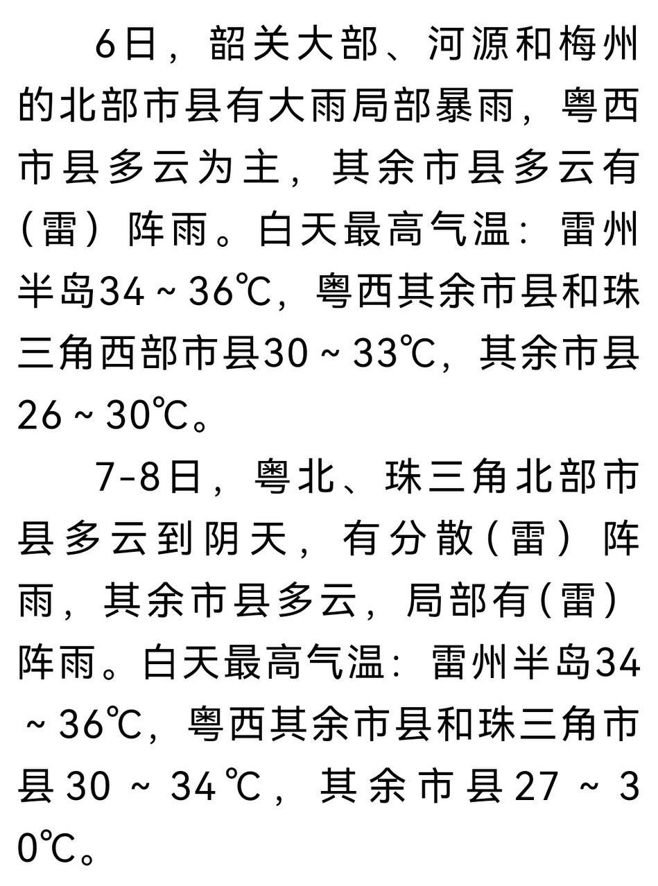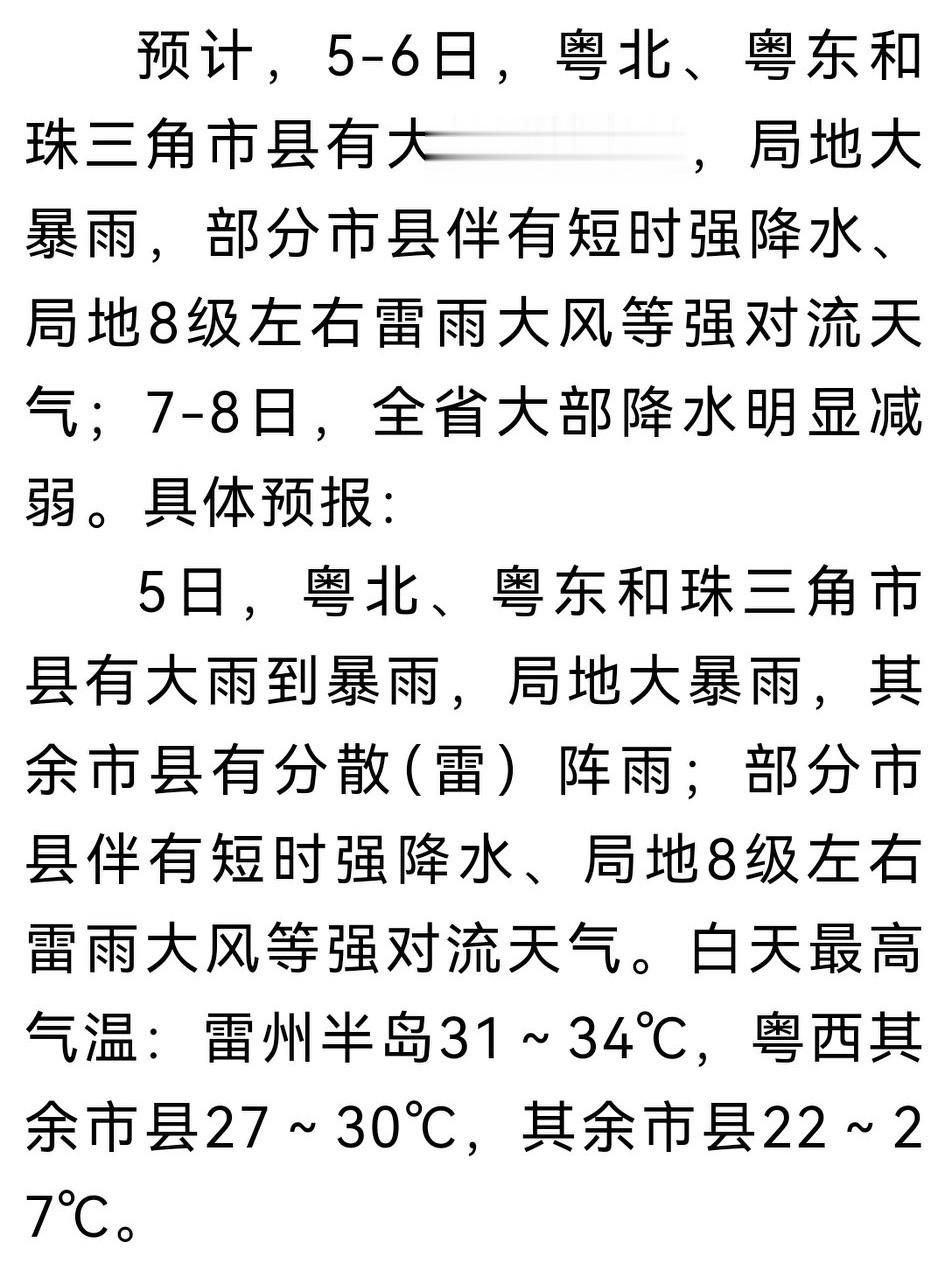 坏消息:5~6日粤北、粤东和珠三角市县有大雨到暴雨,局地大暴雨