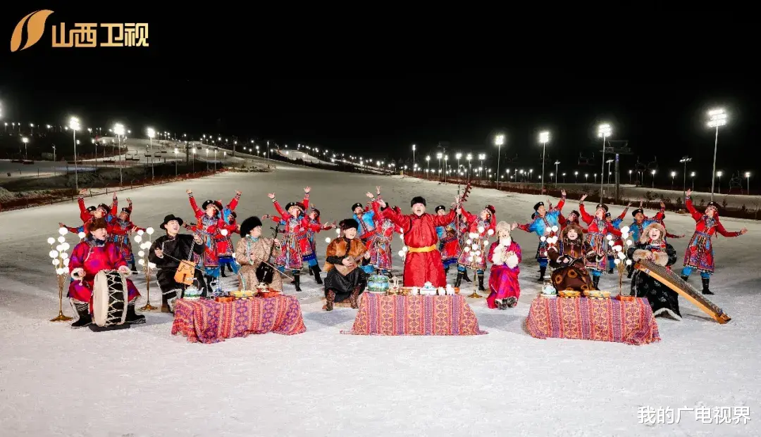 融合了国家级非遗“翻山铰子”的节目《追梦》,演员们手持彩绸缠绕的铰子,腾挪跳跃,铰子翻飞如蝶,清脆的击打声与欢腾的舞步交织成一曲生命的狂欢;国家级非物质文化遗产——河南坠子的曲调响起,“群星奖”舞蹈《欢腾鄂尔多斯》瞬间将万龙白登山国际滑雪场打造成一场盛大的“冬季那达慕”,舞台的边界被彻底打破。