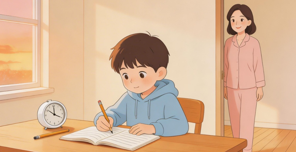 如果他偶尔拖沓,也别马上批评,而是跟他聊:“今天为什么写得慢呀?是遇到难题了,还是中间玩太久了?咱们明天可以试试‘先写难的作业,再玩’,好不好?” 让他自己发现问题、调整,比你替他安排更有效。有个妈妈说,孩子完全独立后,反而比以前写得更快,因为他觉得 “这是我的作业,我能自己管好”。