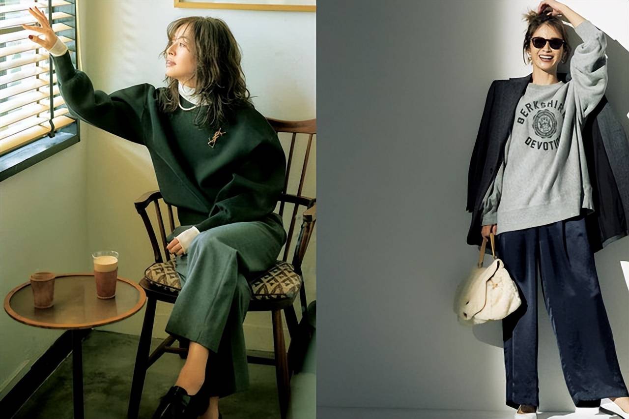 能代表休闲单品的运动衫,因为是40+熟女穿着,所以可以搭配沉稳的造型,享受看起来不粗心不随便的时尚平衡!