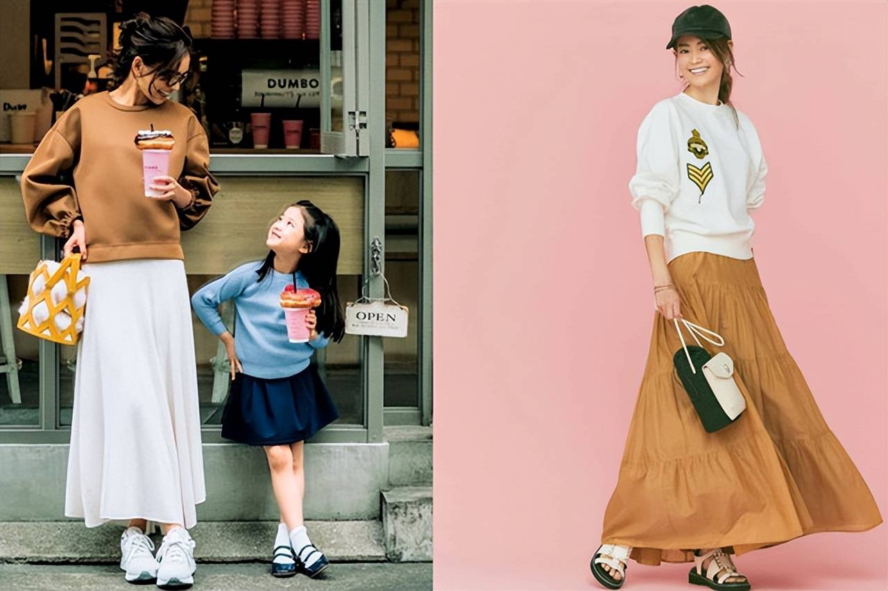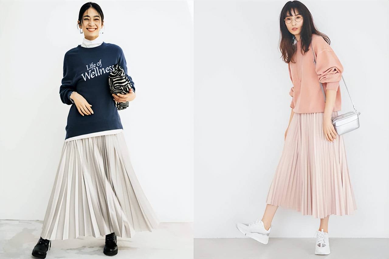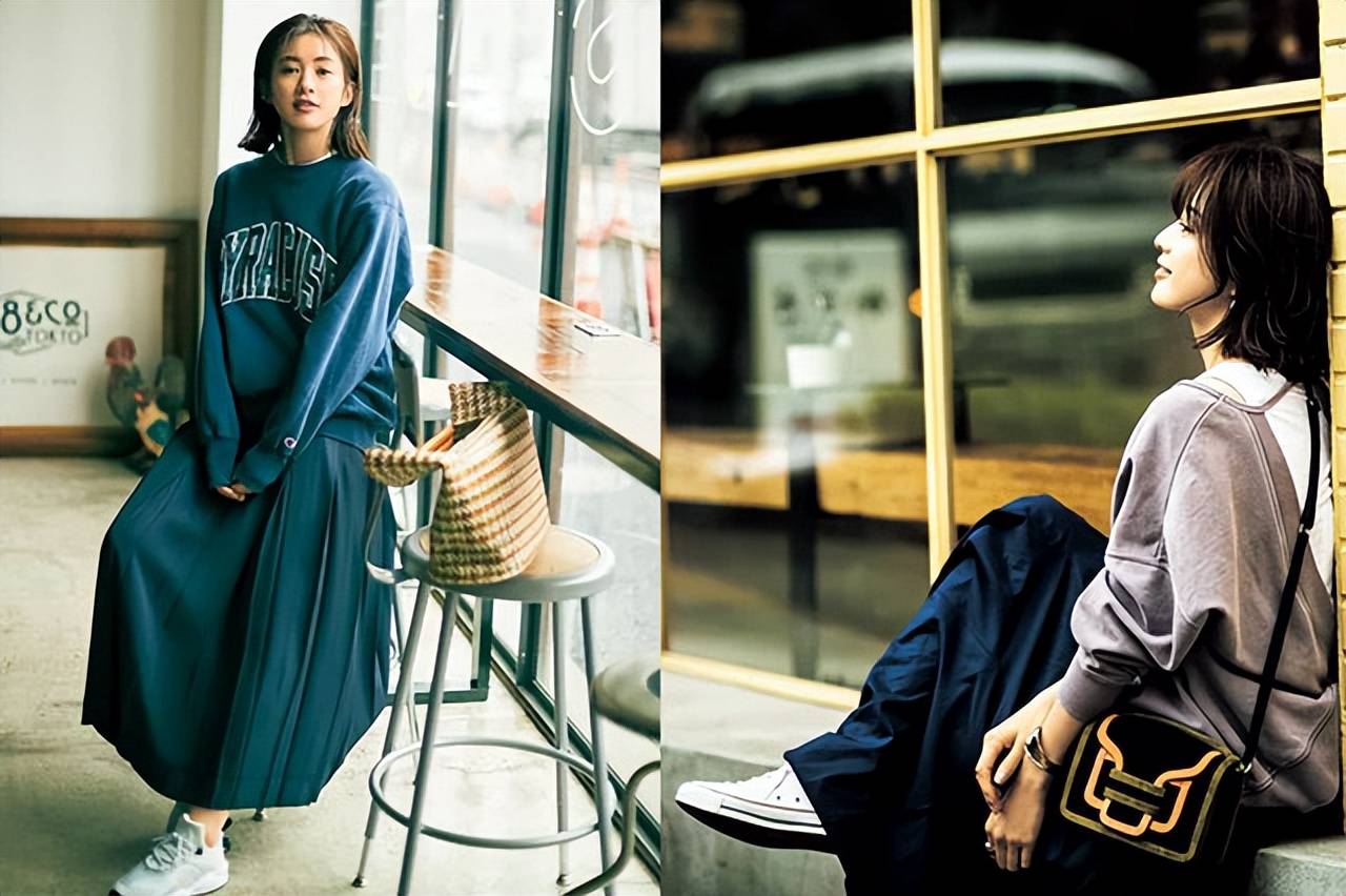 试着在里面穿一件衬衫,形成鲜明的对比,如果想搭配裙子,无论是喇叭形还是紧身裙,都建议是选择长款。单穿给人休闲印象的运动衫,搭配女性化的单品,可以升华成成熟又可爱的造型。