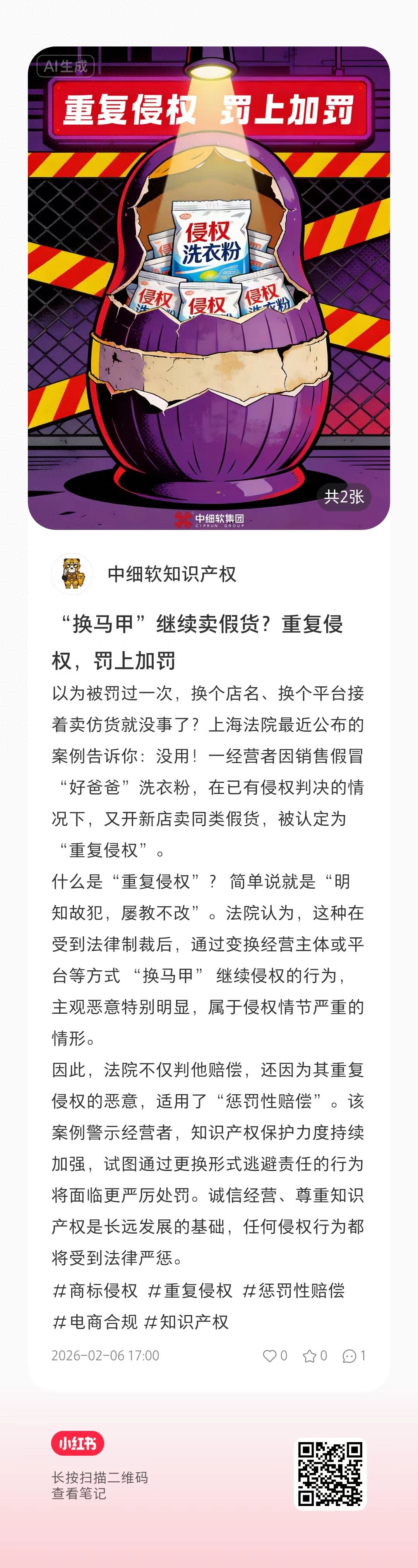 “换马甲”继续卖假货?重复侵权,罚上加罚