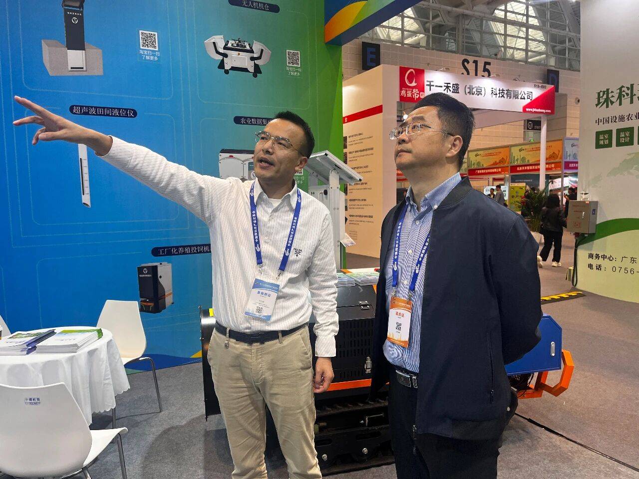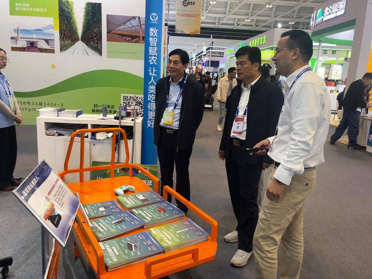 走进江苏叁拾叁农业机器人 体验区, 水产投饲机器人、履带植保机器人、智慧灌溉闸门、温室搬运机器人 等 装备,吸引了大量 参会嘉宾驻足 。农业农村部大数据发展中心副主任韩 巍、江苏省 农业农村厅市场信 息处处长马军、 光明农业发展(集团)有限公司董事长陈斐然等领导莅临展区指导,并对江苏叁拾叁的农业技术成果给予了高度肯定。