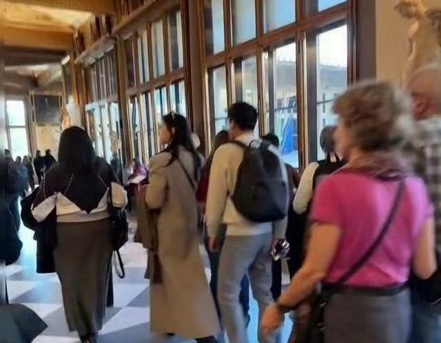 乌菲兹的光斜照在大理石地面,人群移动像水流,他们就站在那道光里,不动声色。