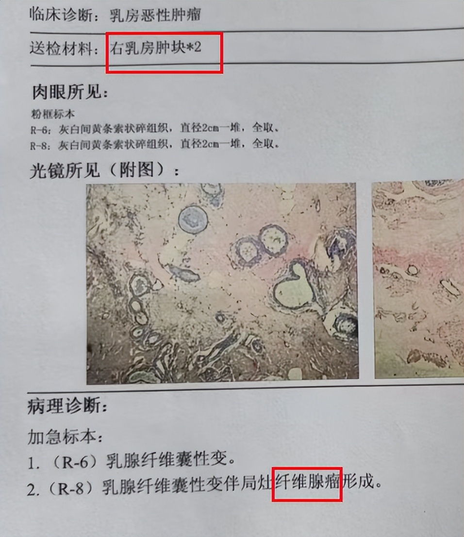 右乳的病理报告显示为良性病变,具体是乳腺纤维囊性变伴局灶纤维瘤形成,属于常见的乳腺良性改变,无需过度担忧。