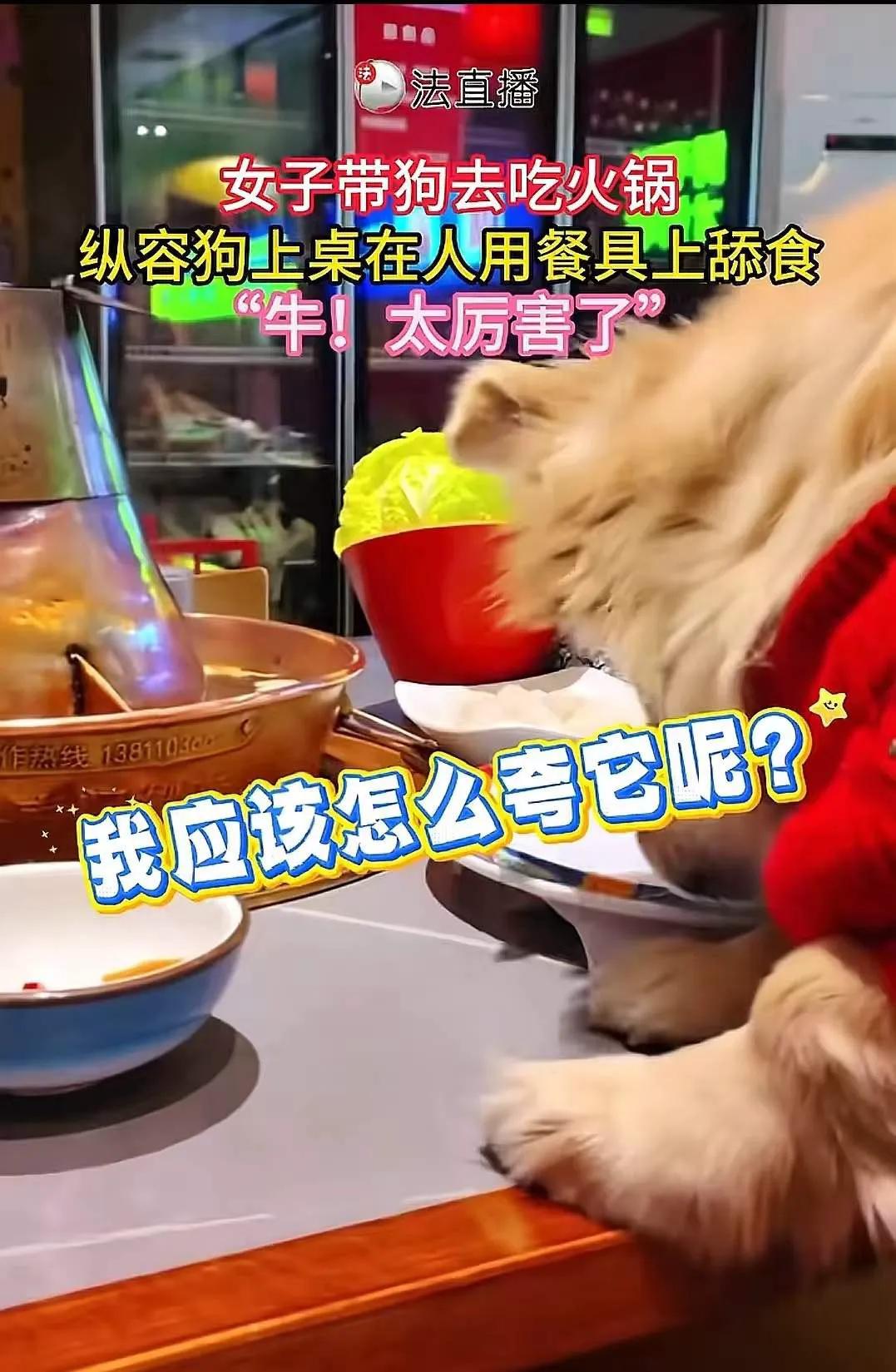 北京,女子带狗吃火锅,让狗上桌吃羊肉卷,还笑着拍视频炫耀,但这下笑不出来了!老板是个狠人,直接全员免单、关门整顿。这意味着十几万的损失,都要这位“爱狗名媛”来赔偿了!网友:好家伙,海底捞小便门220万的教训,你是一点没往心里去啊!