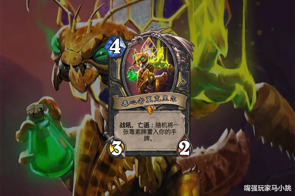 我们还可以把药剂大师普崔塞德和另一张有类似效果的盗贼橙卡毒心者对比一下,也能发现它的强大。毒心者是战吼、亡语各给一张1费随机药剂,效果弱,胜在可以用来触发连击效果,但只有两张。药剂大师普崔塞德就不一样了,源源不断的混合物,效果还更强。说起来,炉石传说设计师居然一直没忘了给盗贼各种类似毒药的卡牌。