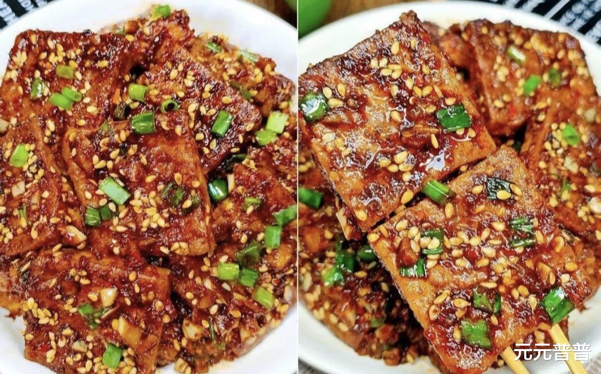 做好的铁板豆腐色泽红亮,外层焦脆,内里绵软,酱汁浓郁咸香,孜然的风味在口中散开,让人一块接一块停不下来。