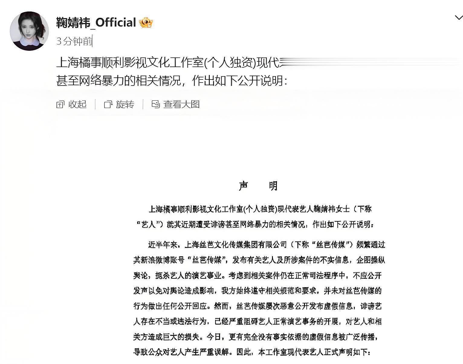 面对突如其来的实名举报,鞠婧祎方的应对策略十分清晰。