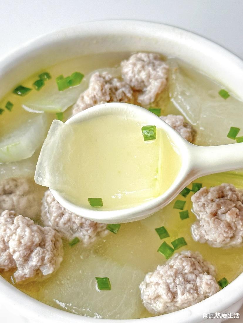 顺序很重要:先煮汤底,再下丸子,等丸子定型后,最后放冬瓜。冬瓜煮到半透明即可,保持一点脆感更好吃。