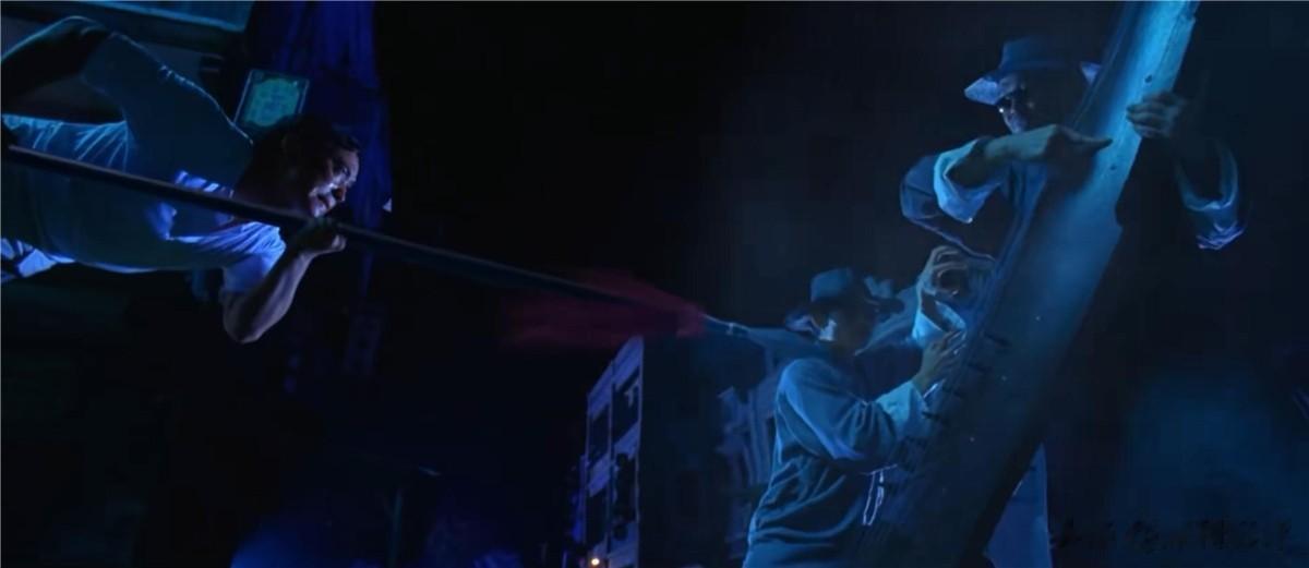 洪金宝《功夫》的整场打戏,除了表达其武术理念外,场面调度同样十分出色,一段“3VS多”的打斗行云流水,演员没有混乱,过程干净利落。